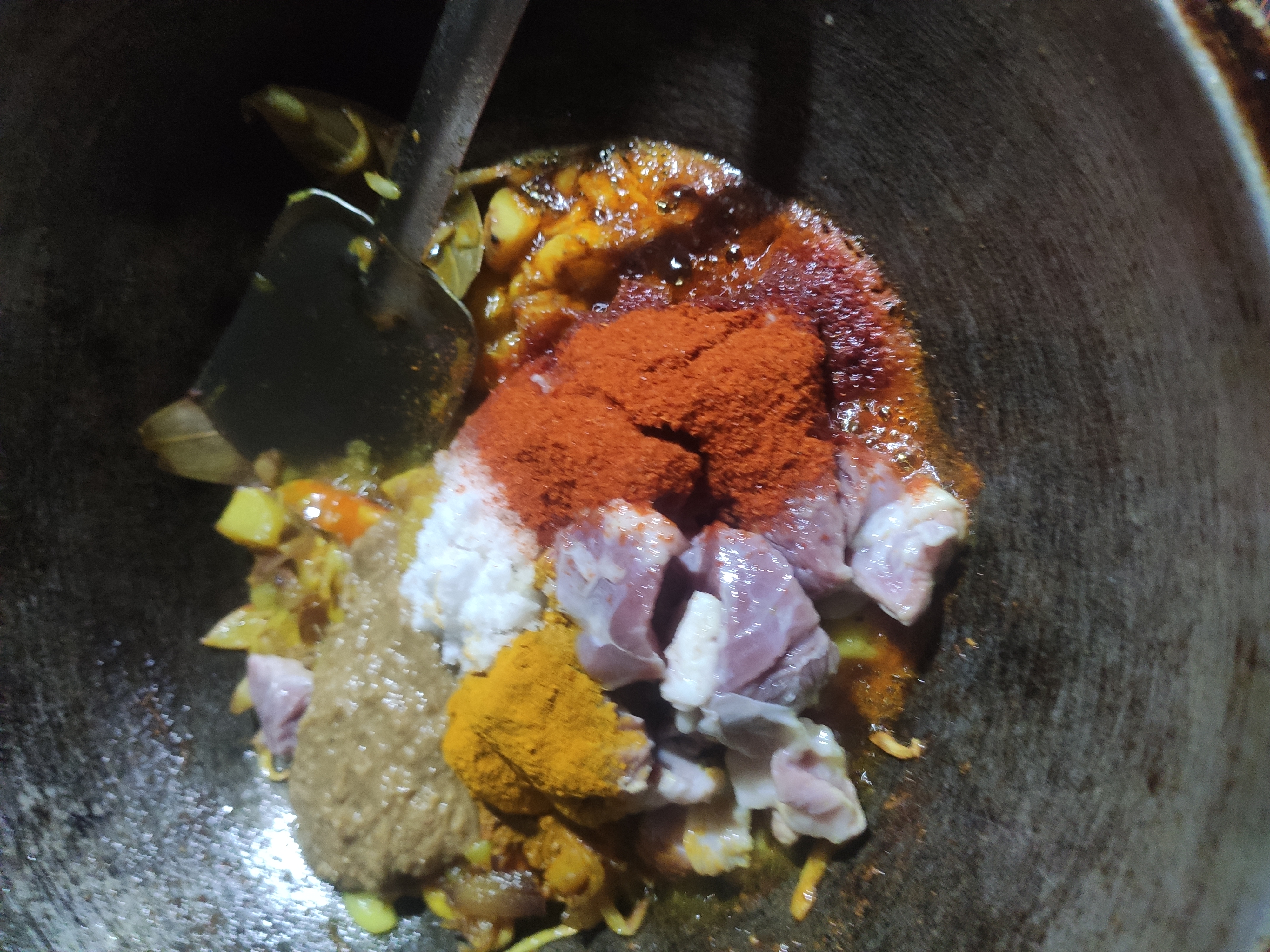৫: মাংস আদা ও জিরা বাঁটা সাথে ঝালের দিতে হবে ও পানি দিয়ে কষাতে হবে।