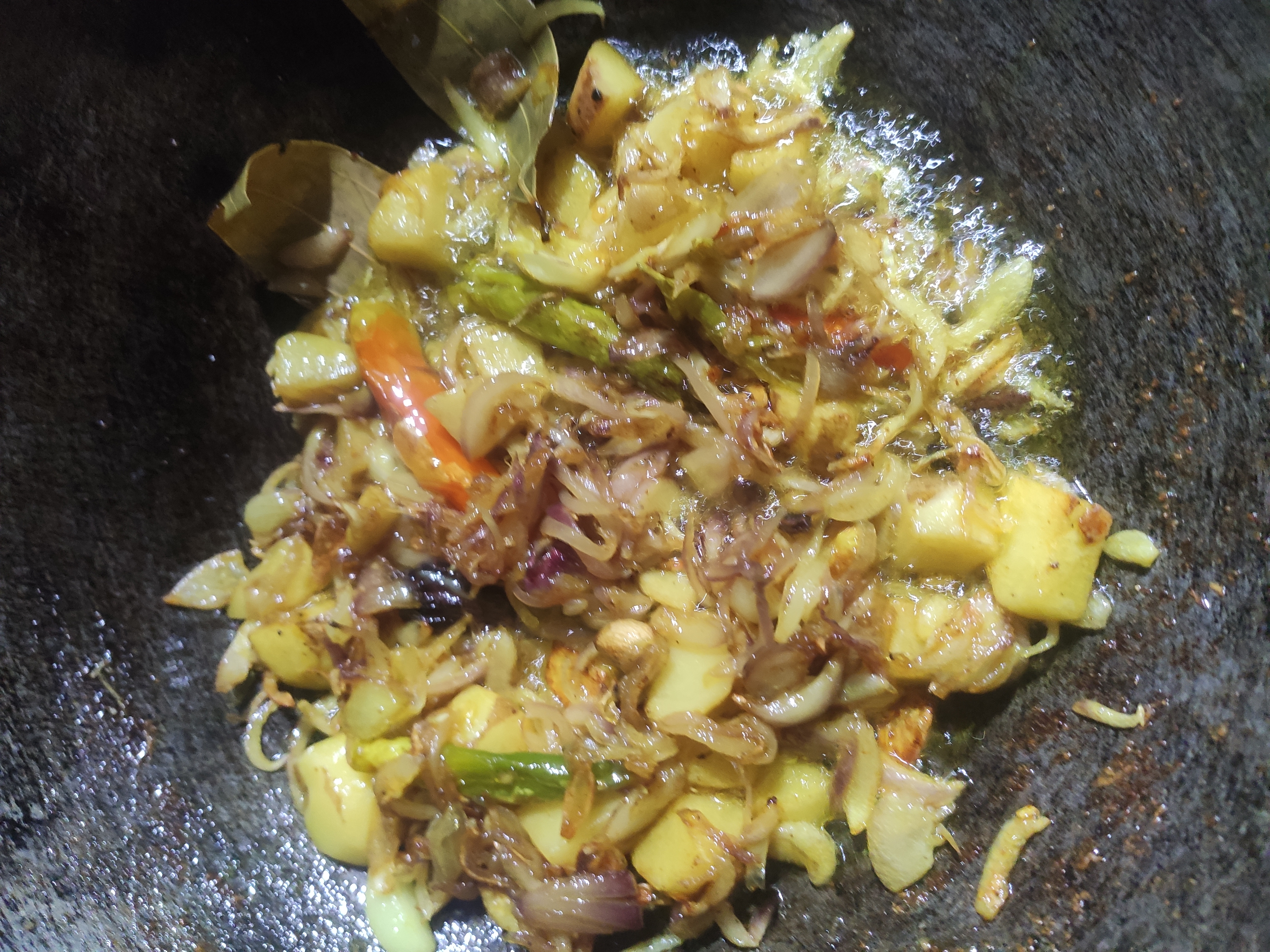 ৪: কেটে রাখা আলু, হলুদ ও লবন দিয়ে দিতে হবে ও ভাজতে হবে।
