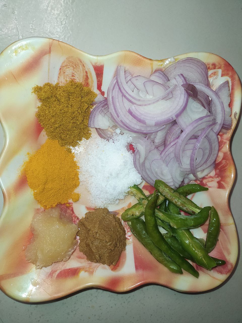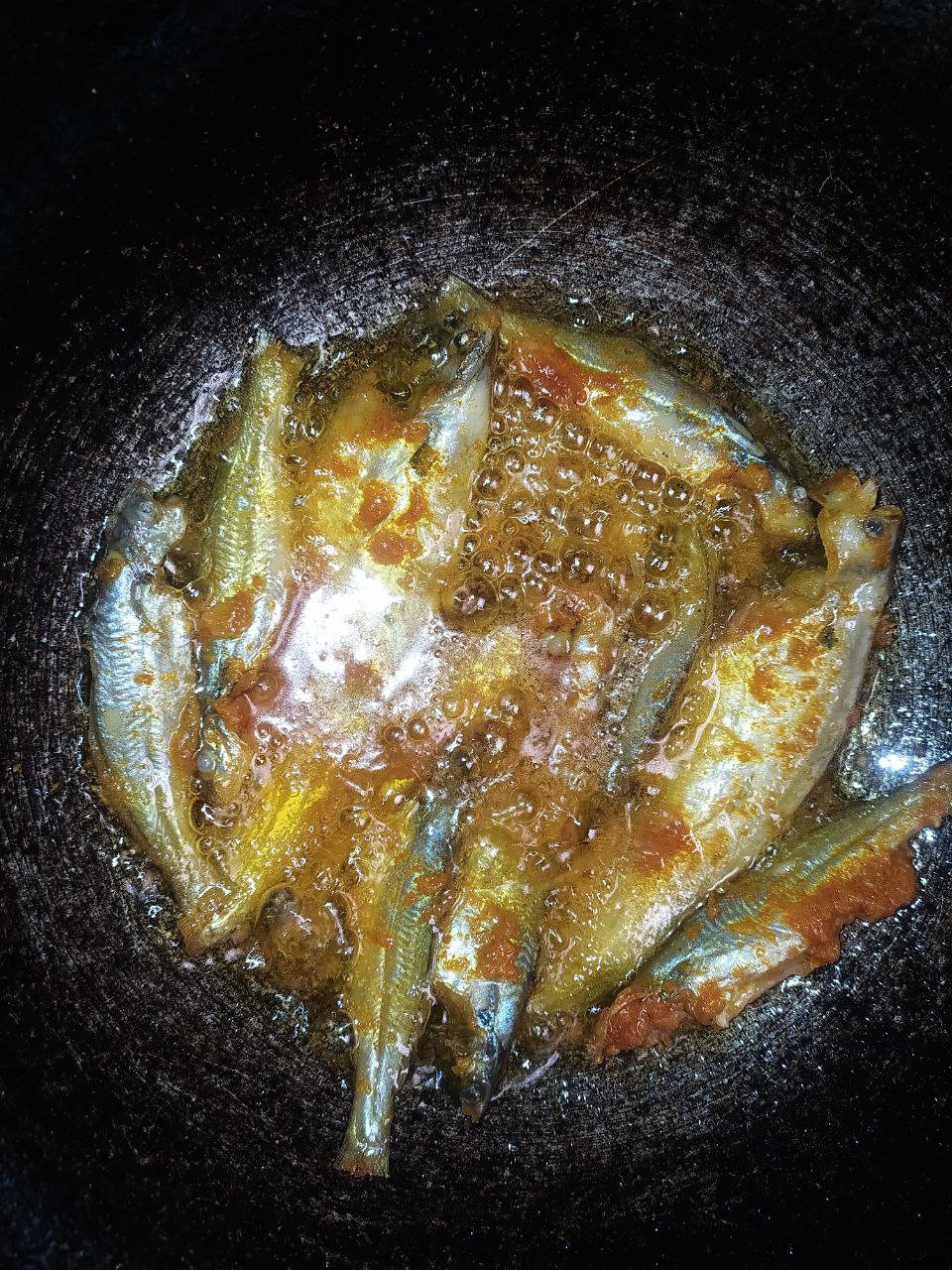 প্রথমে চুলাতে কড়াই বসিয়ে তেল দিয়ে দিলাম। তারপর তেল গরম হলে মাছ গুলোকে হলুদ দিয়ে ভাল ভাবে মিক্স করে নিলাম।
