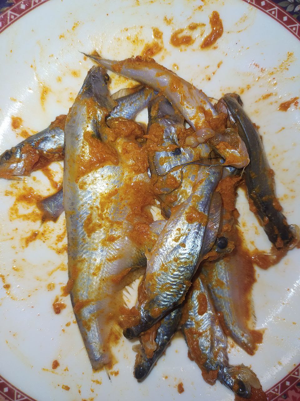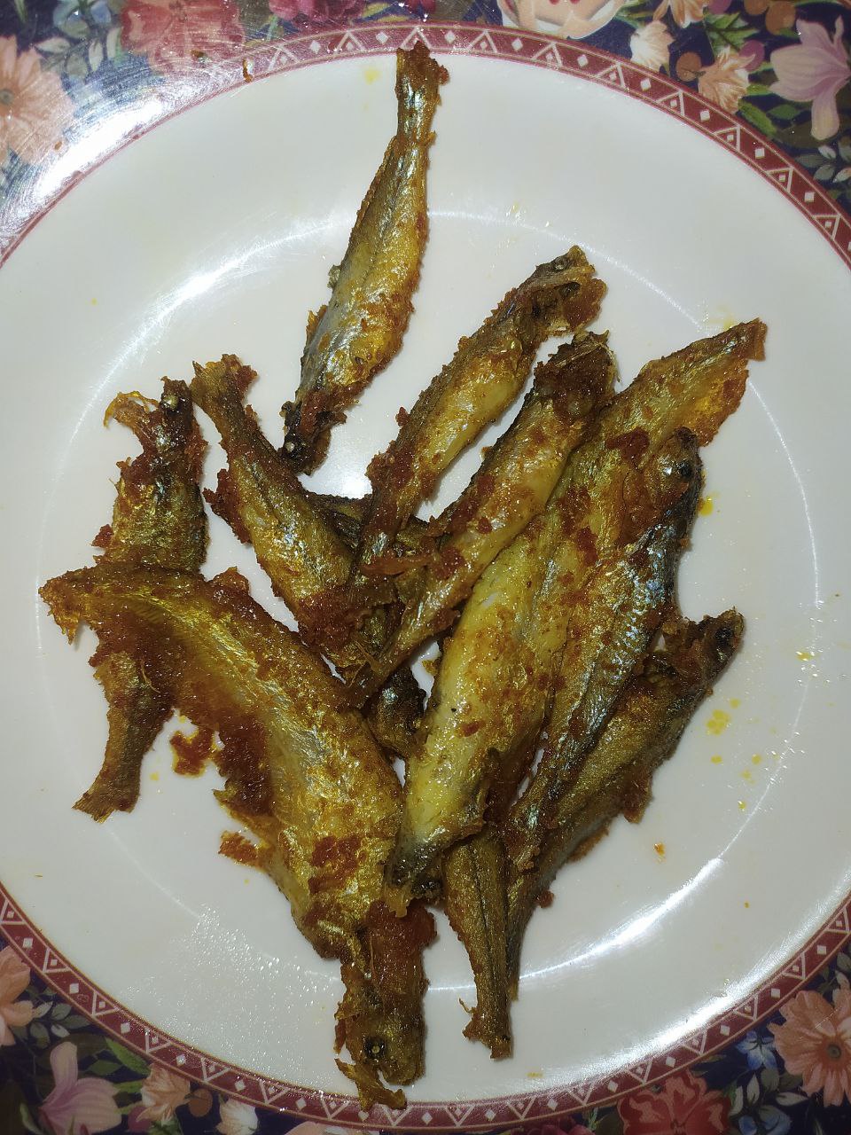 তারপর গরম তেলে মাছ গুলো ছেড়ে দিলাম। মাছ গুলো ভাল করে ভাজা হয়ে গেলে তুলে একটি প্লেটে রাখলাম।
