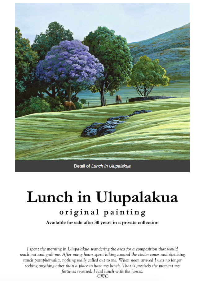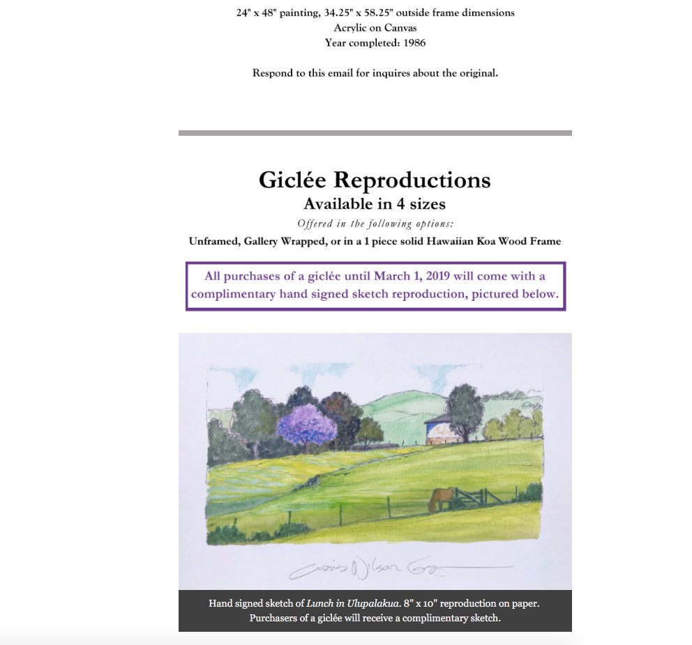 Hand signed sketch of Lunch in Ulupalakua. 8" x 10" reproduction on paper.