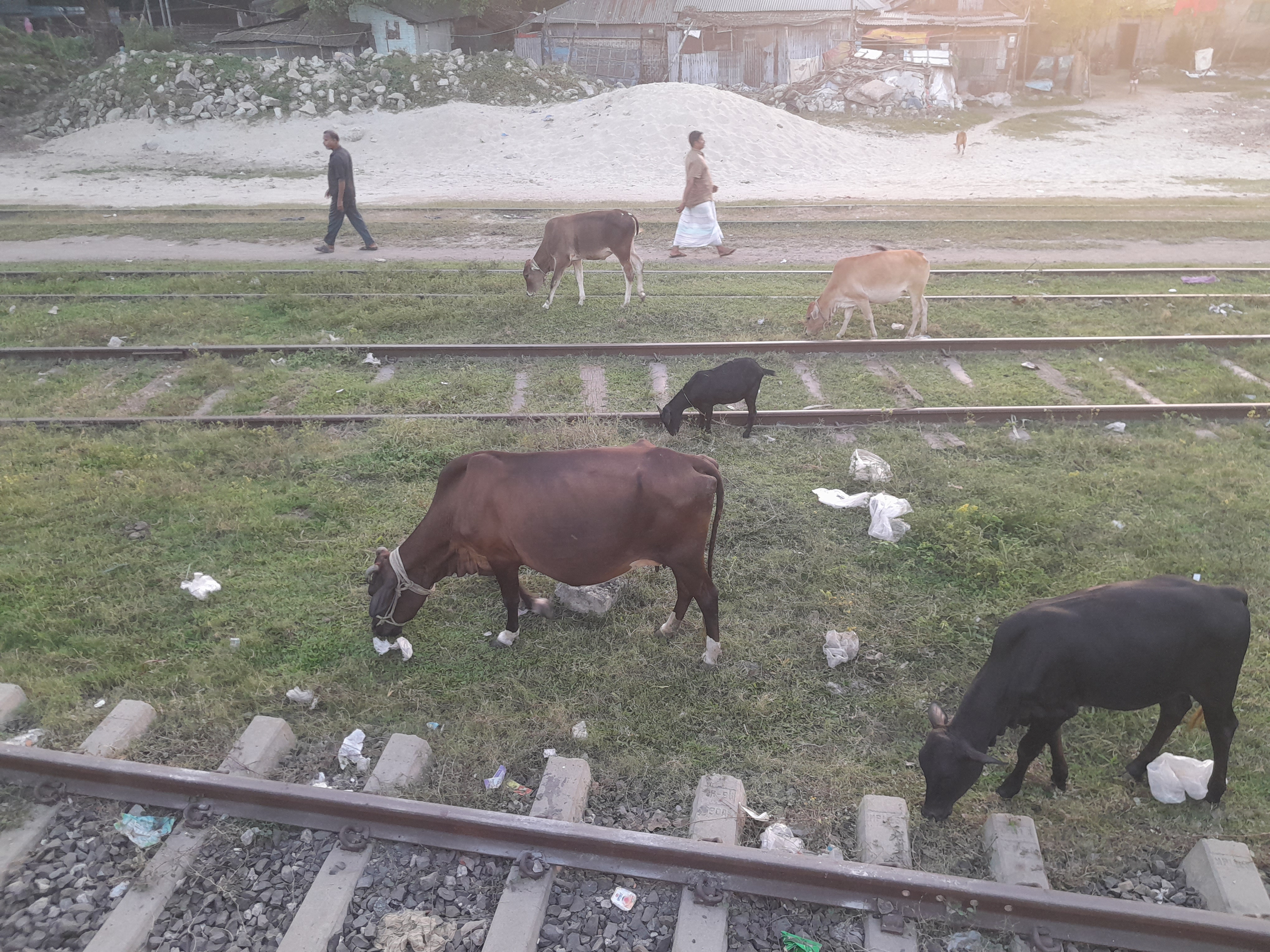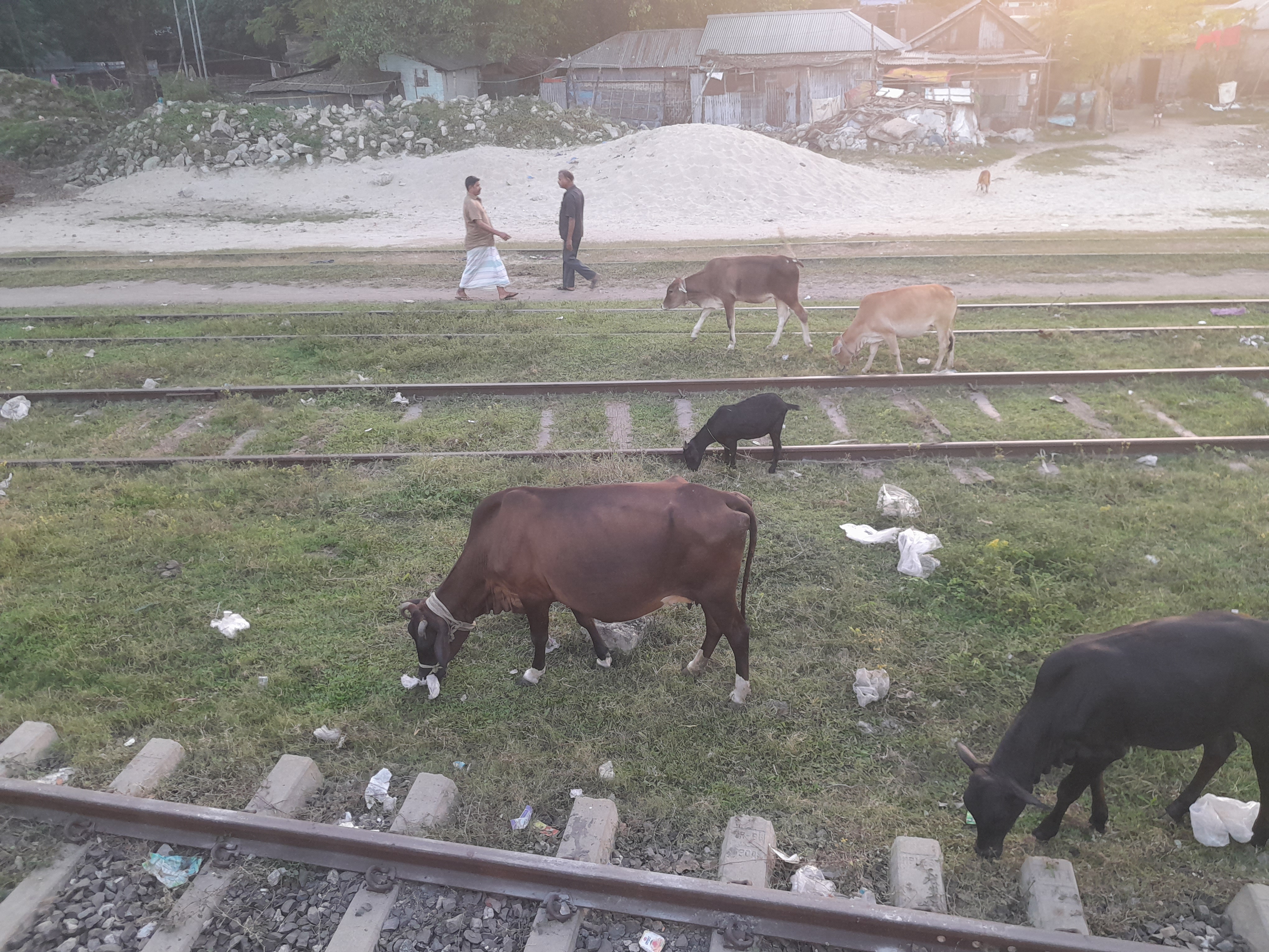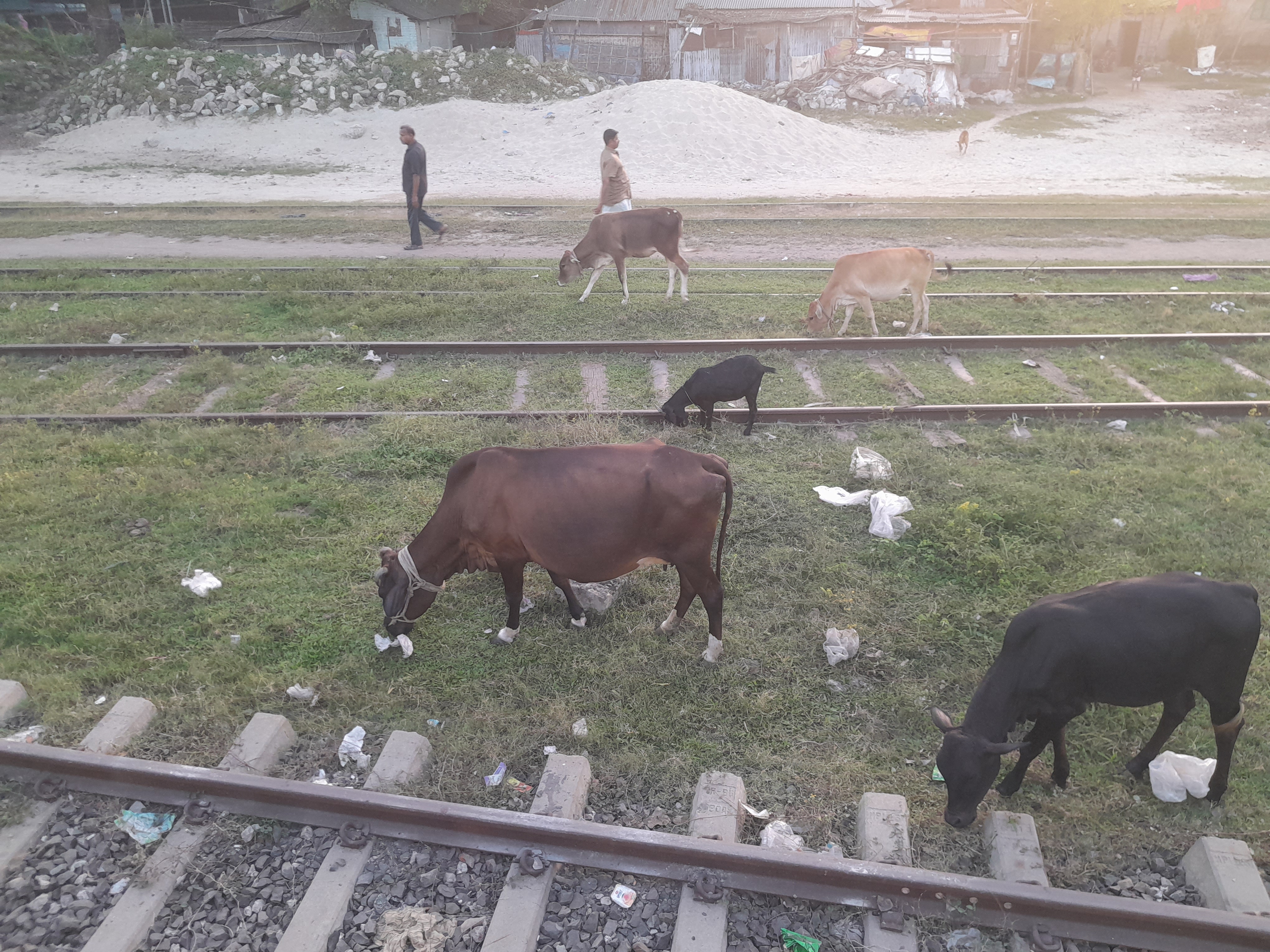 কয়েকদিন আগে স্টেশনে গিয়েছিলাম। সেখানে গিয়ে দেখি কিছু গরুকে বেঁধে রাখা হয়েছে। গরুগুলো স্টেশনের পাশে দাঁড়িয়ে ঘাস খাচ্ছিল। সেখানে অনেক গুলো গরু ছিলো।