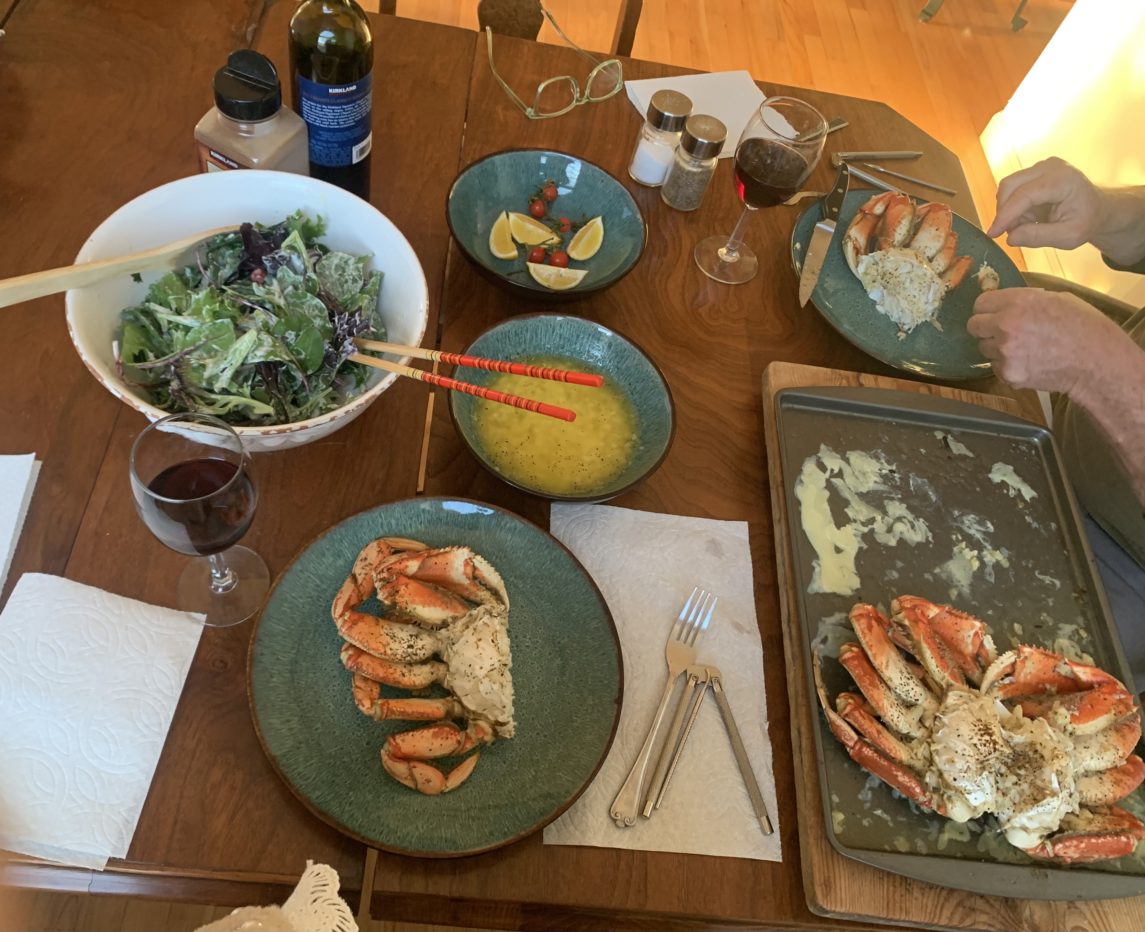 眼下正值美国的螃蟹🦀️季,昨天周日,我买了两只鲜活又肥美的大螃蟹🦀️,用新学到的方法制作了一款特别的料汁,搭配蟹肉,味道鲜美嫩滑,真是好吃到不要不要滴!😋😍当然,为了均衡营养,高蛋白的同时也少不了清爽的蔬菜沙拉🥗,螃蟹配沙拉,简直是天作之合!