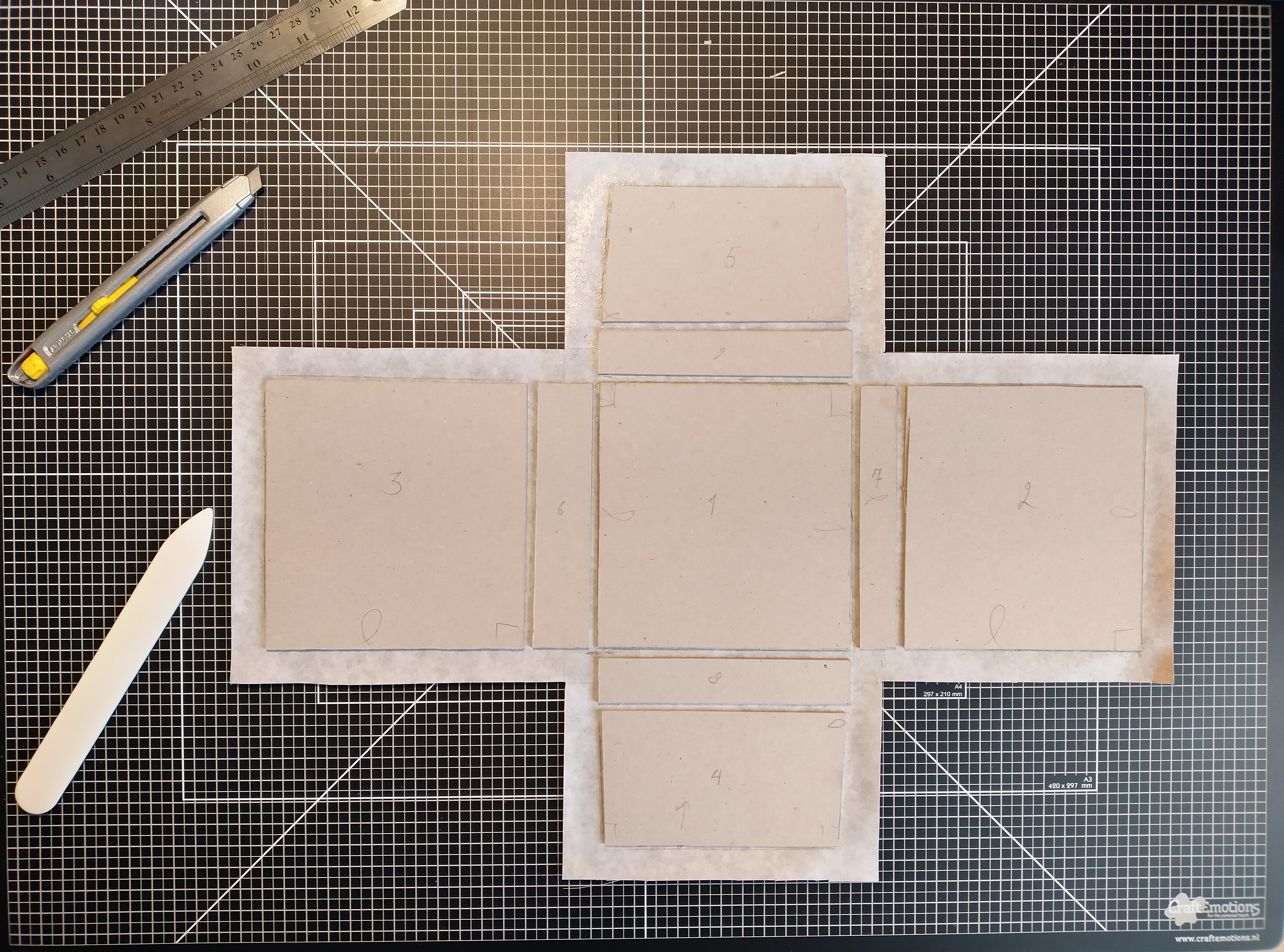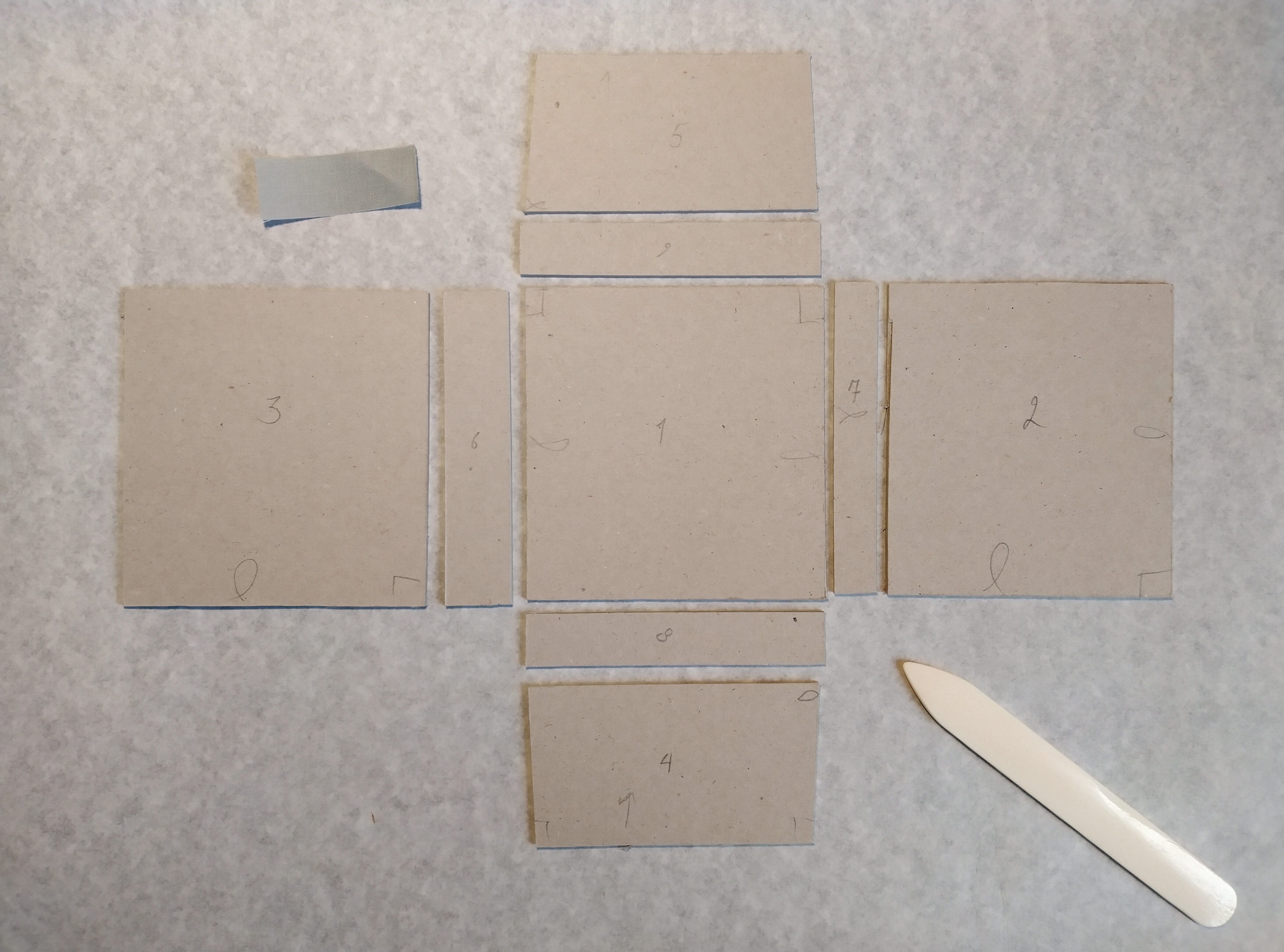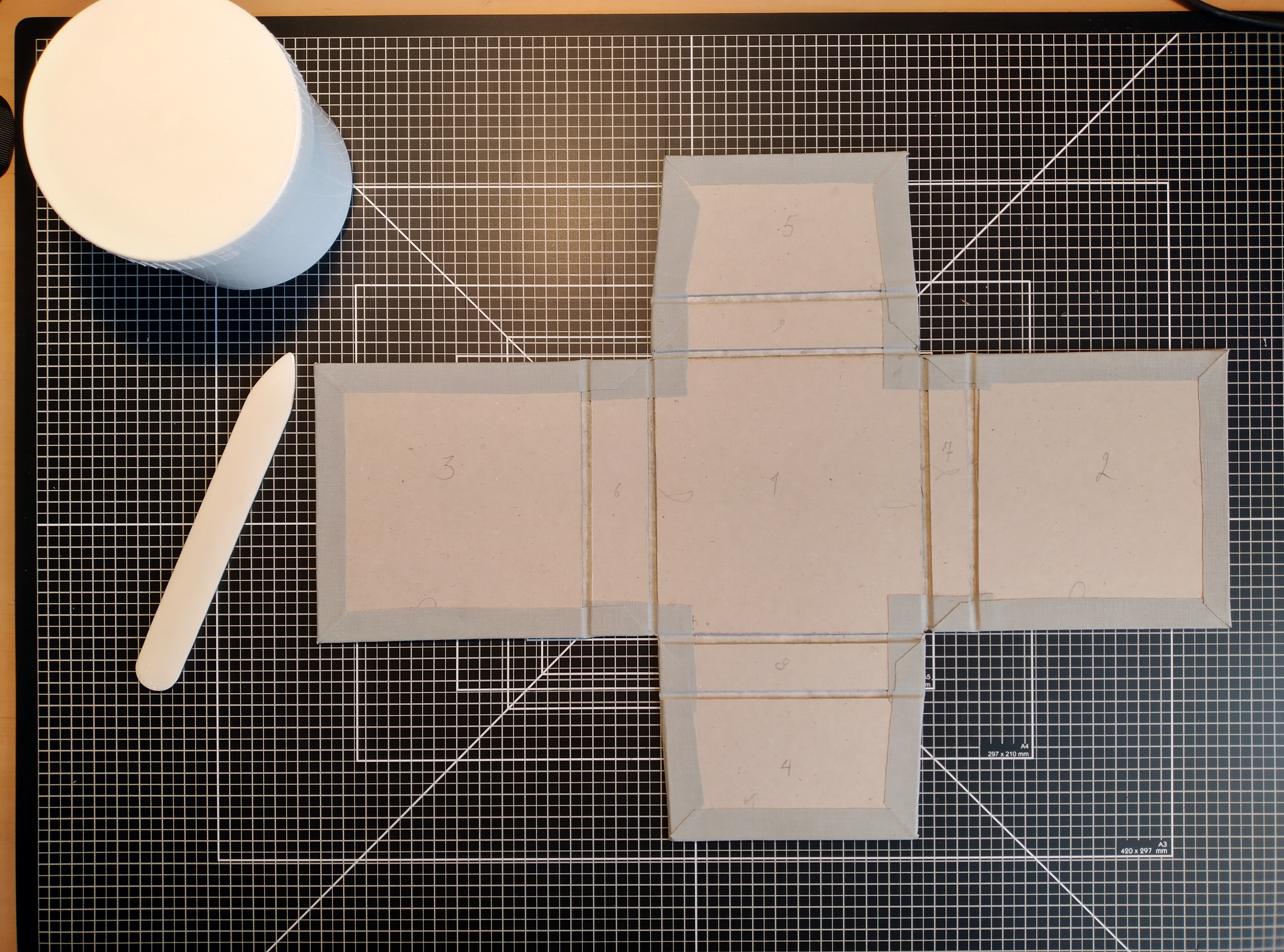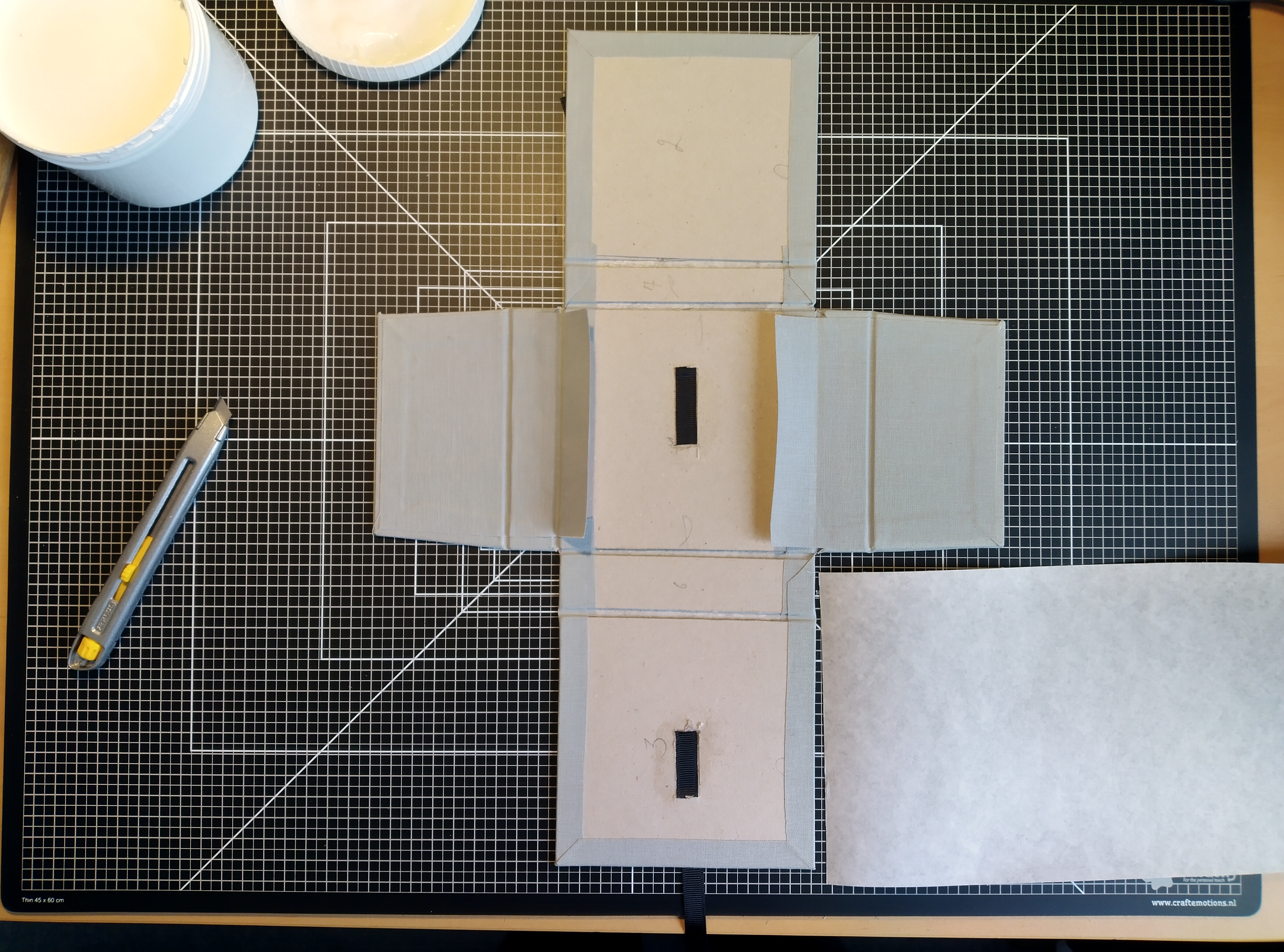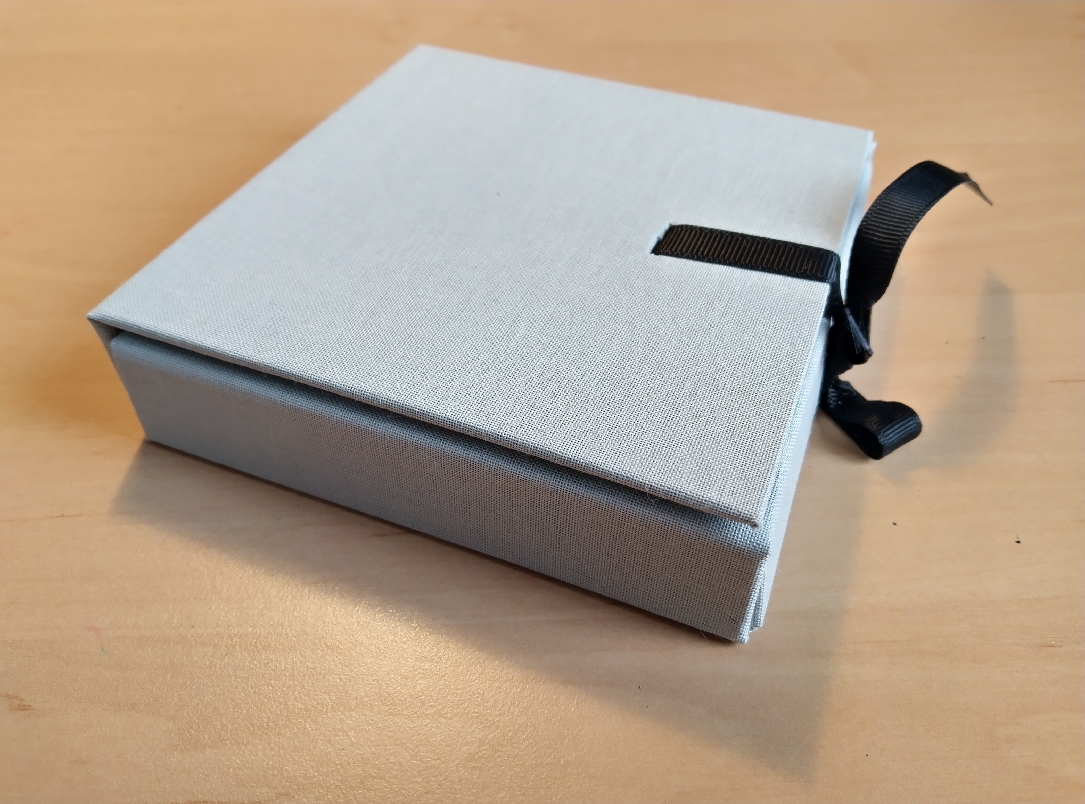 The case will be held shut with two ribbons, so these I attach by gluing them to the panels.