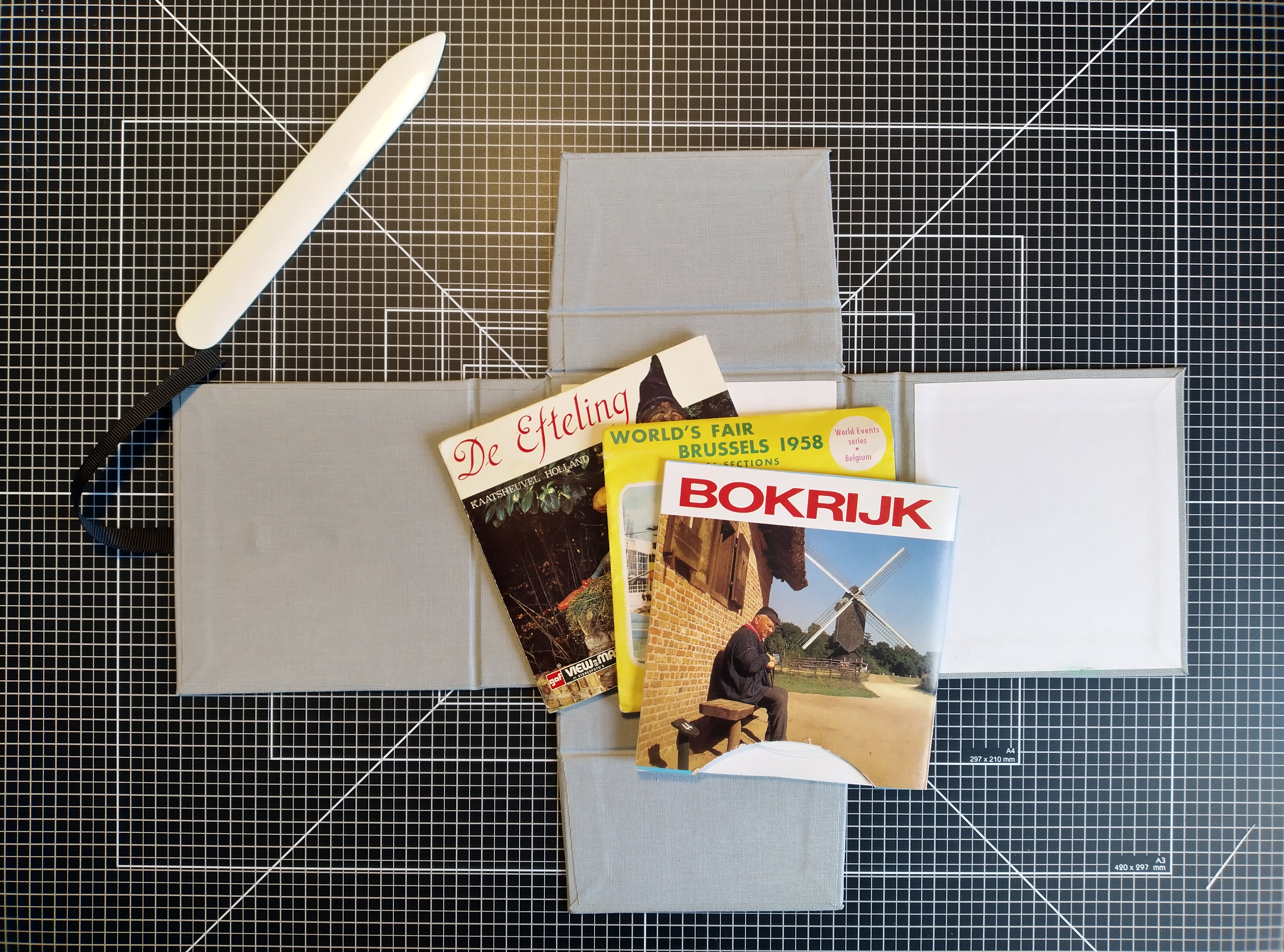 While snow is slowly covering the ground with a white blanket on this cold Sunday in February, I get my knife and glue out to create a portfolio case to keep my rather small collection of View-Master reels in.