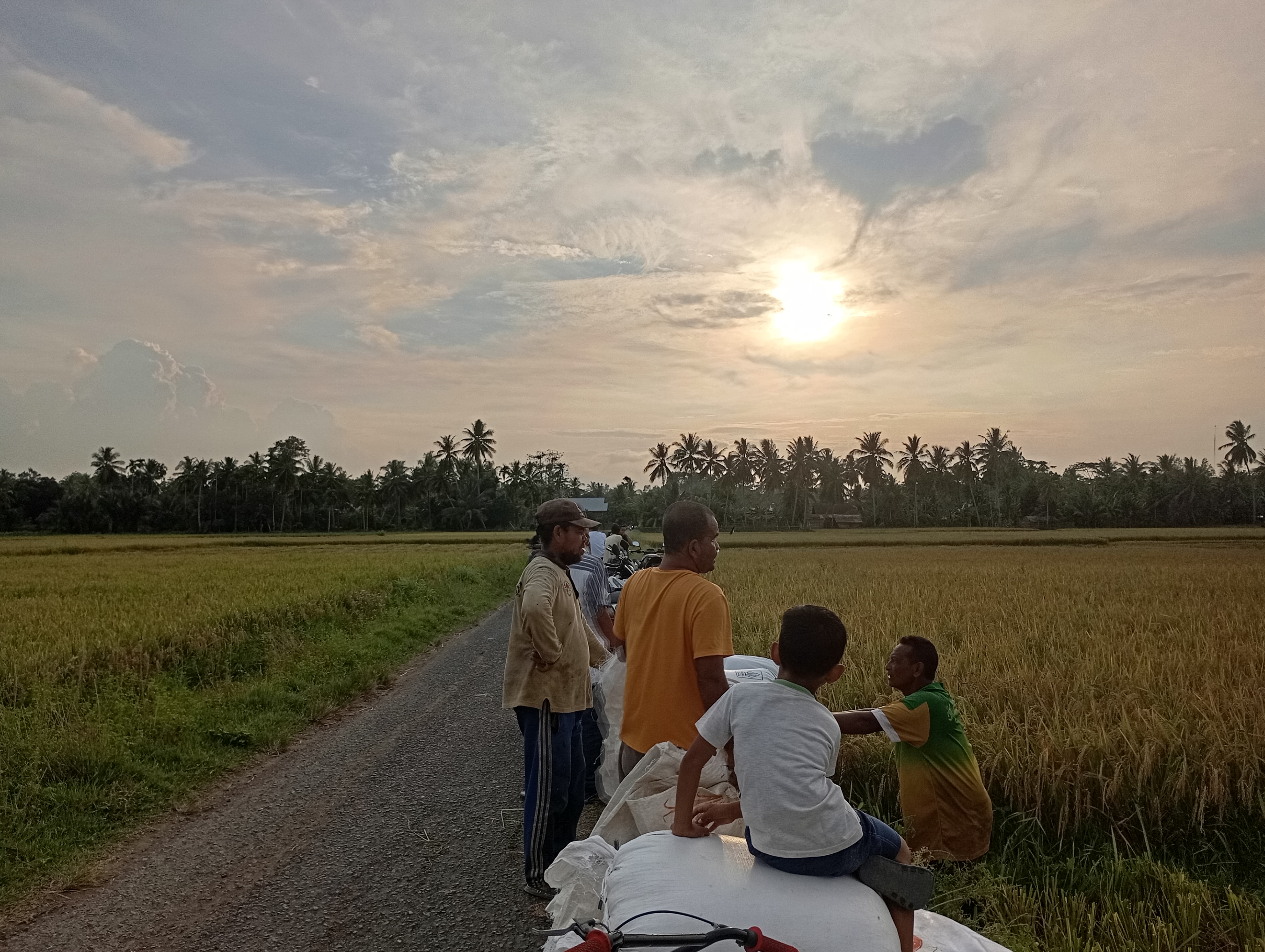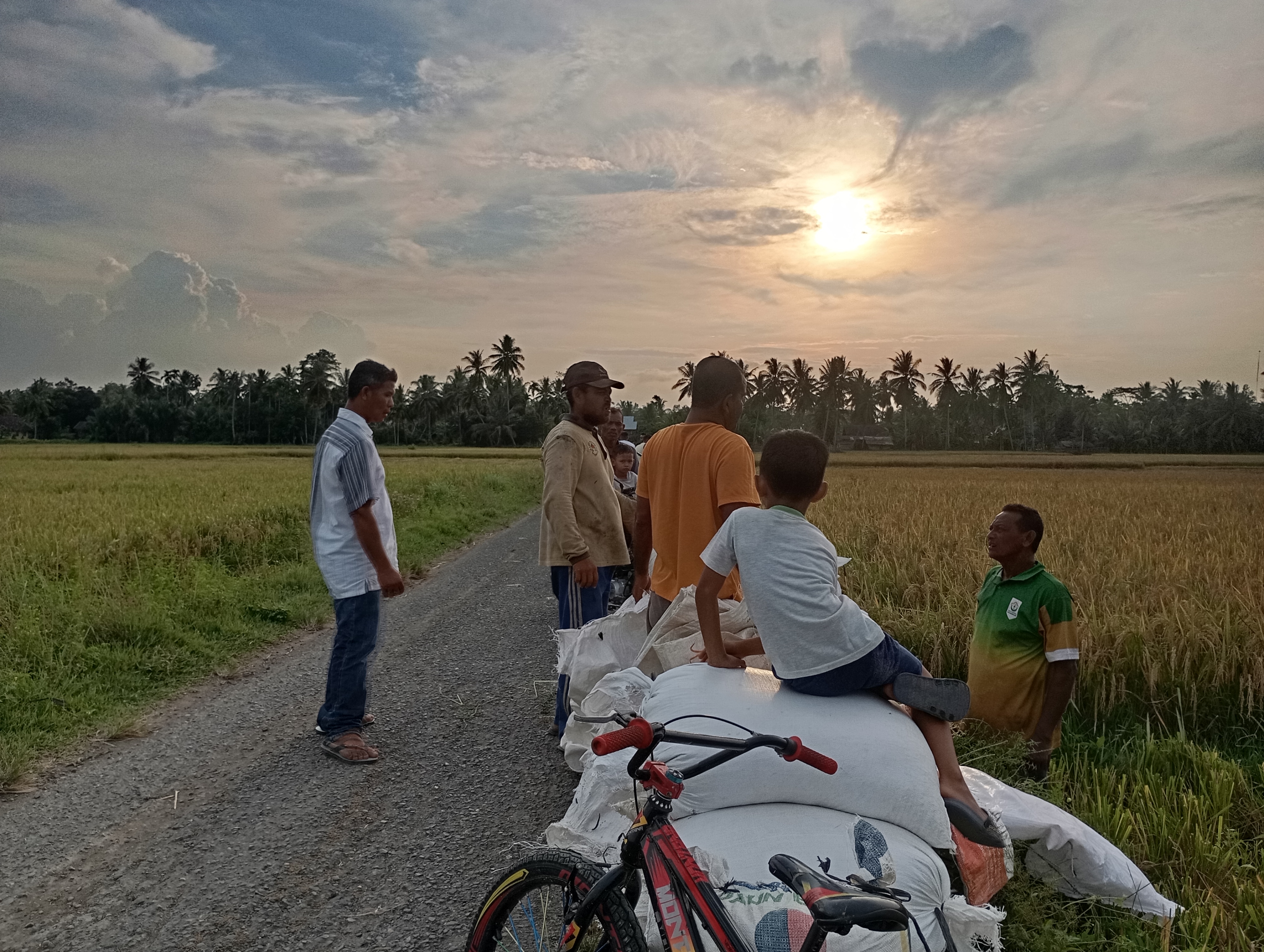 As usual, after the Asr prayer, I immediately rushed to change my clothes because my rice was cut right on that day. After cutting, in less than twenty minutes, all the rice had been cut and the rice was neatly collected on the side of the road for me to take home and some of it I would sell to pay for the cost of cutting the rice.