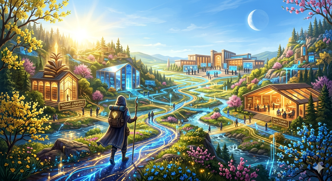 Under the waxing moon, everything felt accelerated and sharply defined. The valley had moved beyond simply storing knowledge; it was now teaching machines to reason, search, and safeguard. Each AI trail resembled a neuron in a growing collective mind, while every act of giving pulsed like a heartbeat. Together, they formed a system alive with intelligence and purpose.