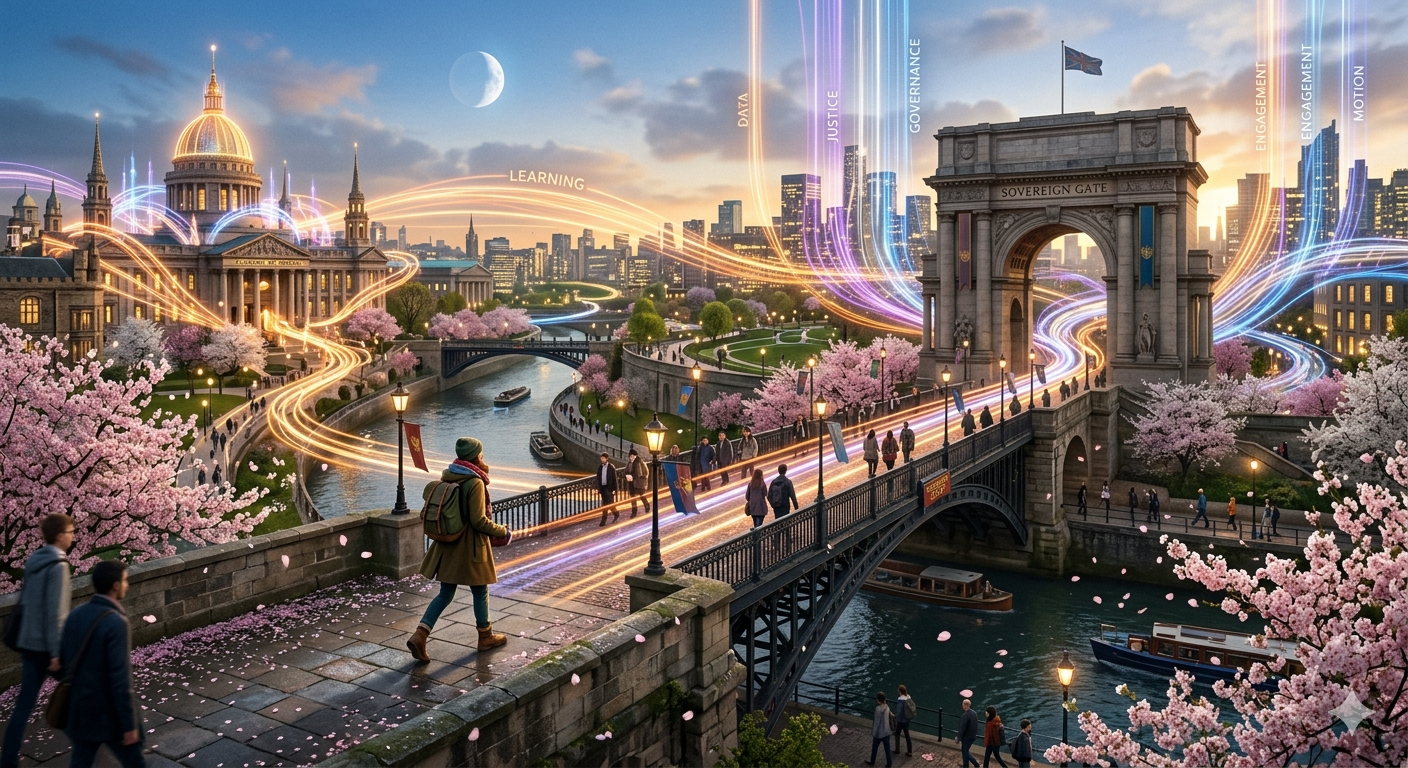 Tuesday morning, April 21, 2026, rose over the iron bridges of the city. The city was already fully in motion, forming a high-resolution tapestry of commuters while cherry blossom petals drifted and danced in the spring breeze. Above it all, the moon had taken on a distinct presence, appearing as a swelling silver pearl that dominated the morning sky. This moment marked the “Civic Spark,” when students across the valley began to find their voices and the western republics called for civic participation.