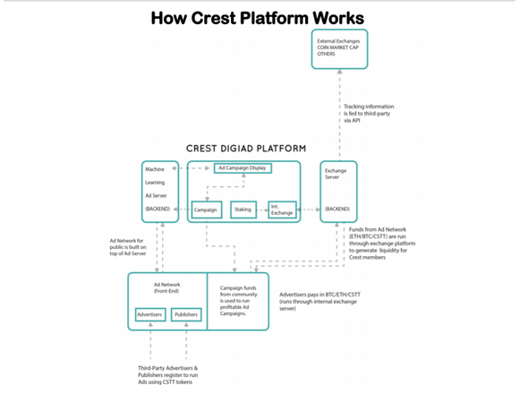 Online marketing and digital advertising over the years as continued to grow as technology growth increases. People now easily place goods and services online, targeting potential customers who will be interested in whatever they have to offer. This has prompted millions to explore the idea of generating passive income through digital advertising and online marketing. But most of them lack the necessary resources or skills required to select and actively promote campaigns which will generate substantial income. With the introduction of cryptocurrency into the world, a better opportunity presents itself to those interested in generating passive income through online marketing and digital advertising.A team of smart experts with decades of experience who have generated substantial revenue in the online marketing industry over the last 10 years came together to analyze this issue closely and up with a unique and great idea, first of its kind called CREST. Crest will present to the world an opportunity to earn passive income by combining cyrptocurrency power and Artificial Intelligence AI with online marketing and digital advertising industry. The Crest team will develop a robust, user friendly DigiAd campaign platform which runs on independent Ad Servers equipped with self-learning algorithms. Using real-time, up-to-date website tracking and historical data on devices, the independent Ad server determines which ads to serve a particular consumer at a specific time. Crest will be focusing on industries like gaming, health/beauty, technology, retail, automotive and financial services.