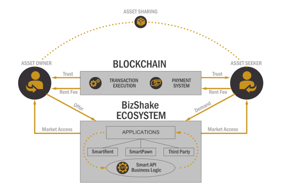 Bizshake is a project that will work on the NEO blockchain and will be fully decentralized. It's about the P2P sharing Ecosystem, which will tokenize real-world assets. It will operate in a similar manner to the operation of AirBNB and Freelancer, but without high fees.