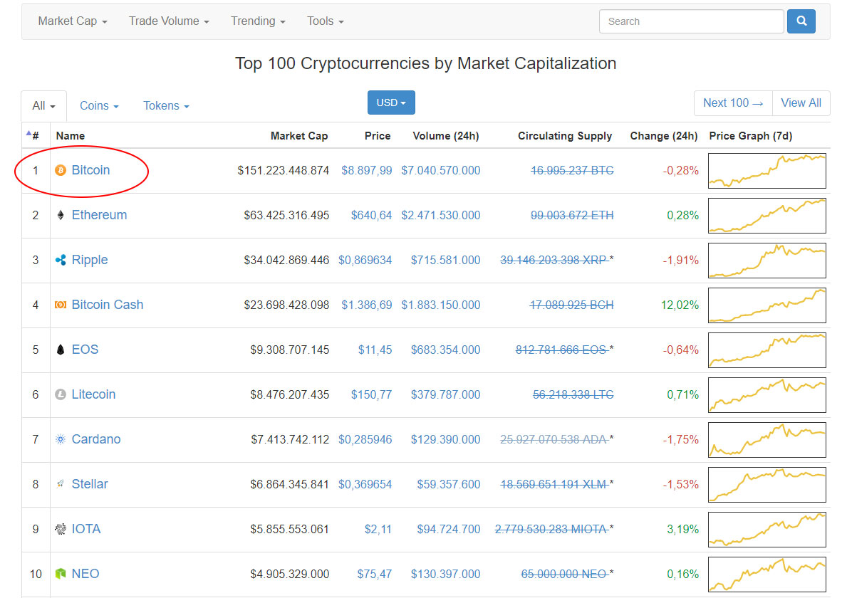 Tiene infinidades de criptomoneda,por ejemplo,en la primera pagina estan las 100 principales criptomoneda,y el mas importante es el bitcoin,que podemos cambiar en casa de cambio por dinero real,ejm;exchange,y las mas conocidas es coinbase,bittrex,binance,y hay muchas mas.