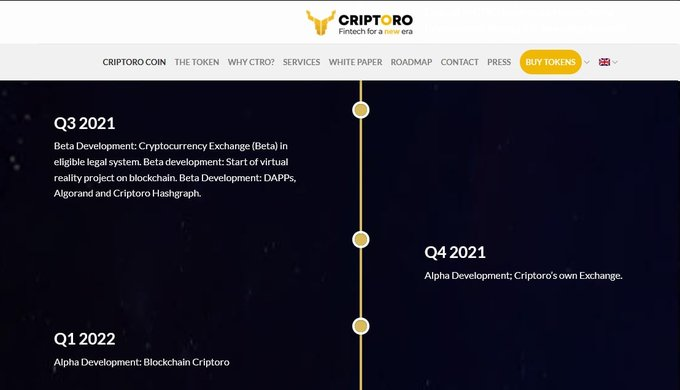 CRIPTORO has two main points for Cryptoro to be successful: its usability, Cryptoro products and services, and third-party organizations and the communities that support it. Furthermore, there is a unique point of innovation in the crypto market, and it is the ICO collection company that will support and support the goal of thinking by physically precious metals (gold, silver, platinum and palladium) and bitcoin, also think about long-term business development.