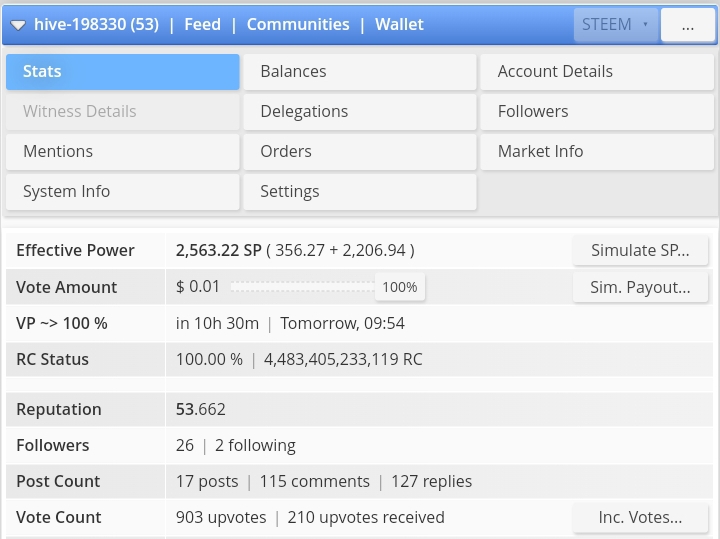 We have a delegation of about 2,206.94 Sp. But for the main time, we have our own 356.27 steem power apart from the delegations bringing a total sum of 2563.21 as seen below;