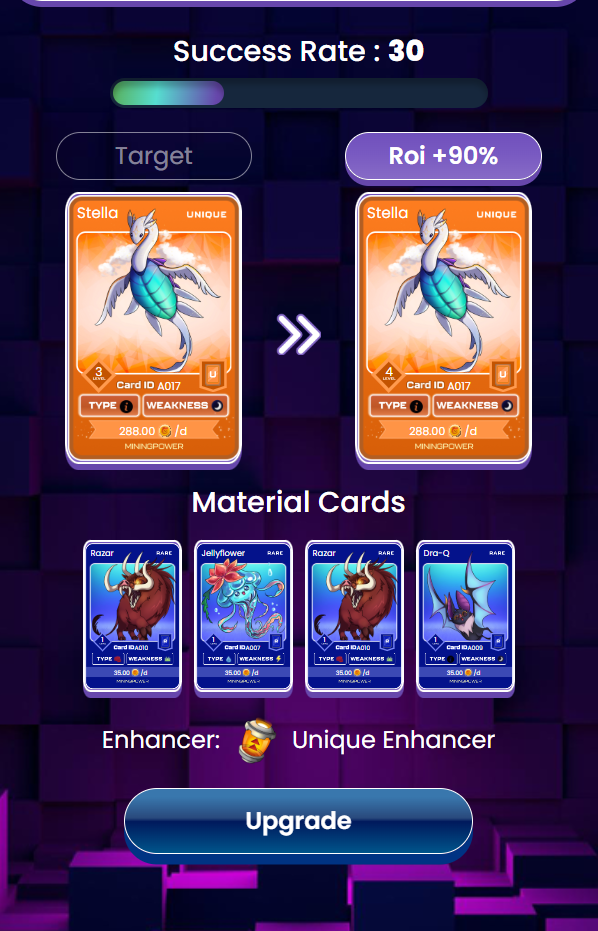현재 1레벨 유니크카드가 없어서 합성에 성공해도 당장 활용할 방법이 없거든요.