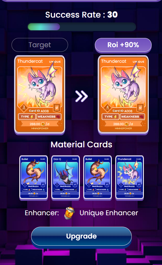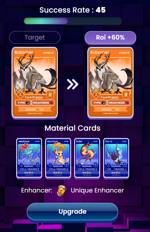레어카드가 엄청 많이 모였기 때문에 유니크카드 강화에 도전합니다.