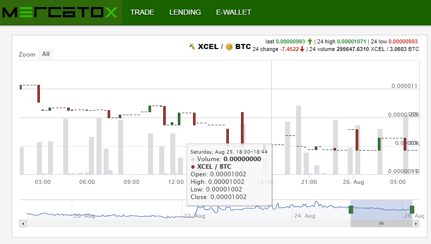 24 volume 295647.6310 XCEL / 3.0603 BTC