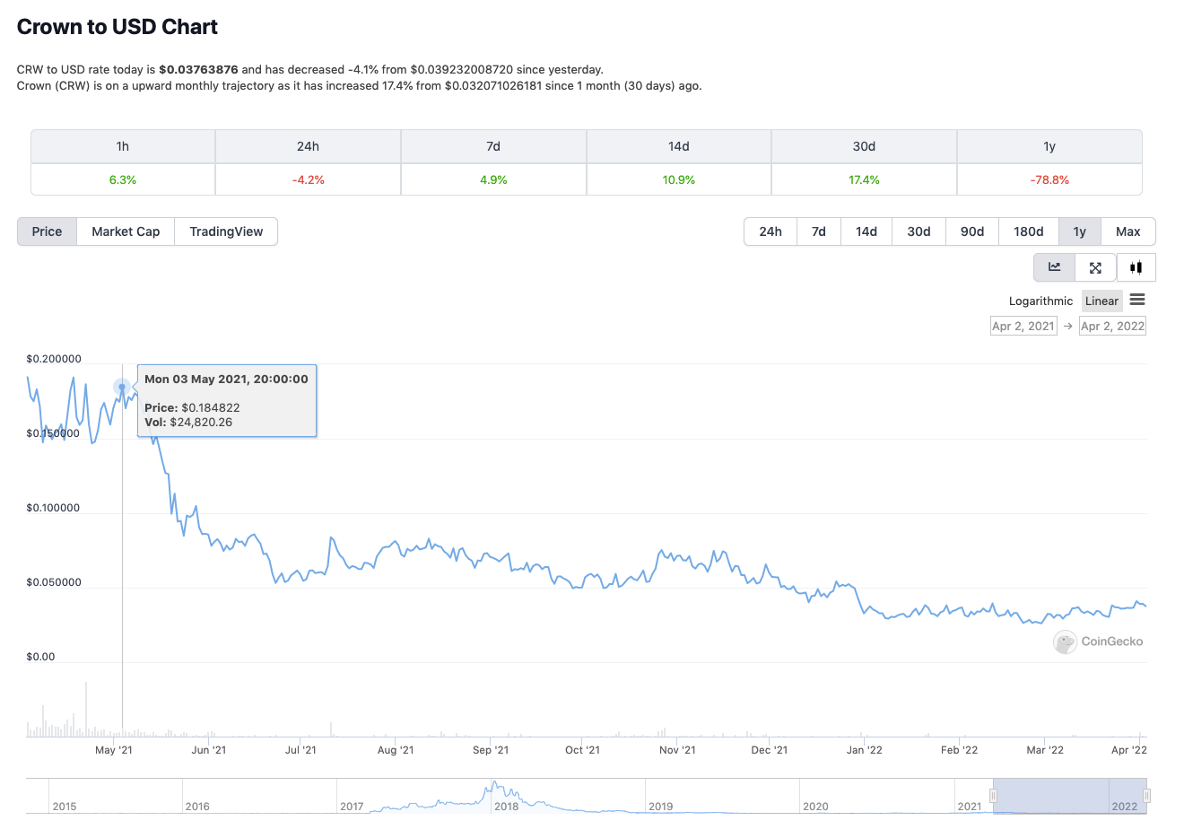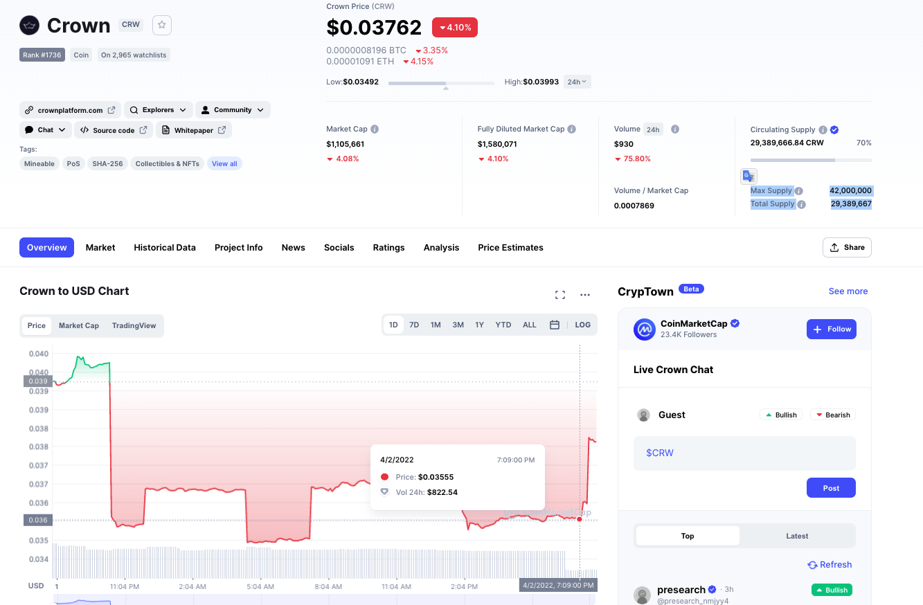 #1 I like the low circulating supply limit of 29,390,011 CRW and max supply of 42,000,000 CRW.