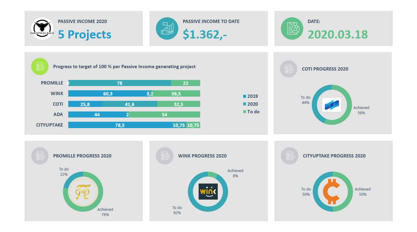 The year 2020 I dedicated to further boost passive income and for that purpose I identified a list of 5 dividend bearing tokens. For all of them I created a target for the amount of tokens to hold by the end of the year. These tokens are: