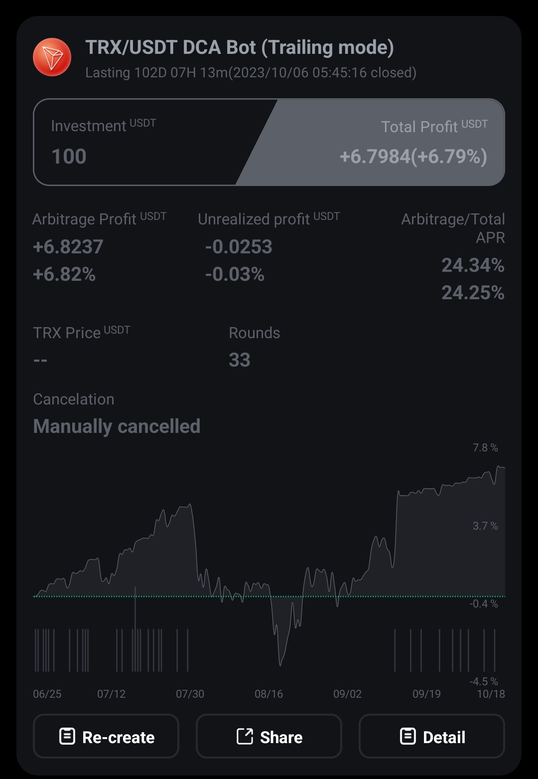 How profitable is your crypto trading activity? The attached screenshot showcases the automatic trading setup I've been testing for over three months. While the amount of USDT generated may appear modest, the annual percentage rate (APR) is truly remarkable. Perhaps it's not on par with the gains made by seasoned futures traders, but this method allows you to invest in cryptocurrencies while still enjoying a peaceful night's sleep.