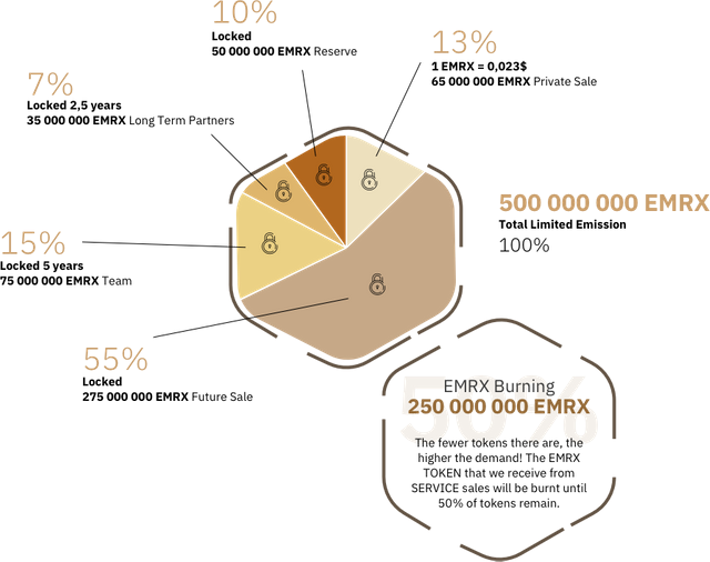 EMRX functionality is structured around the utility it provides. It creates a growth spiral through the built-in mechanism in which the ecosystem participants can earn EMRX for their participation.