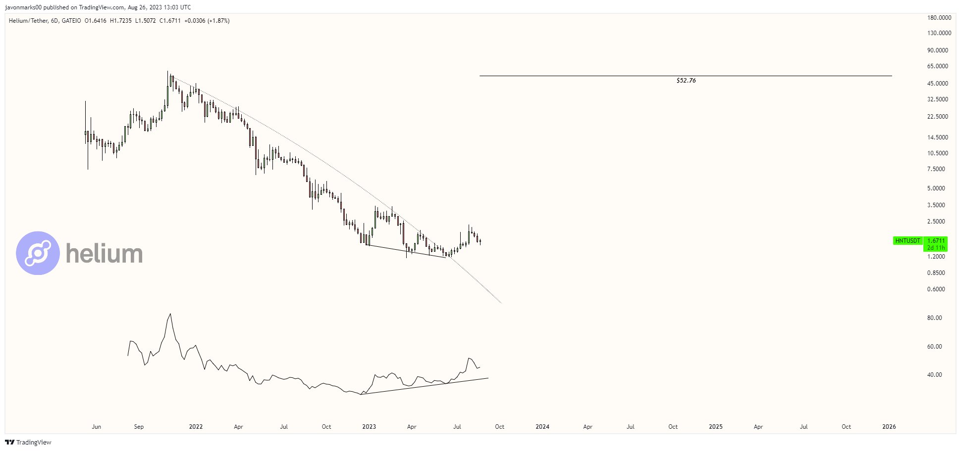 $HNT (#Helium)'s chart displayed and confirmed a Bullish Divergence just before prices broke out of an approximately 573 day resisting trend!