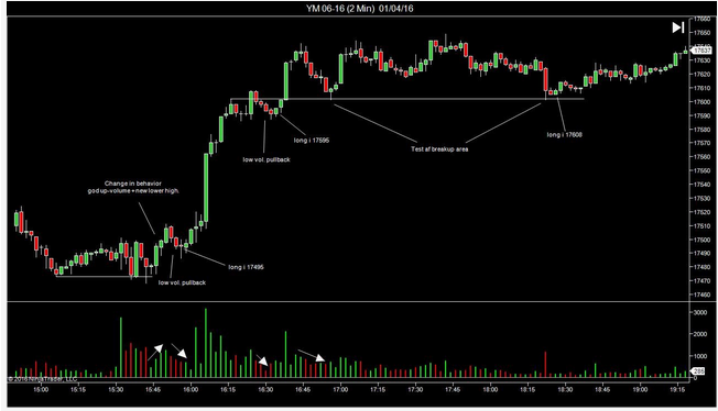 If you are new, I would suggest you start trading YM in a 1 min. graph. That way for you a lot of action, you can easily see how volume helps you read the market's movements.