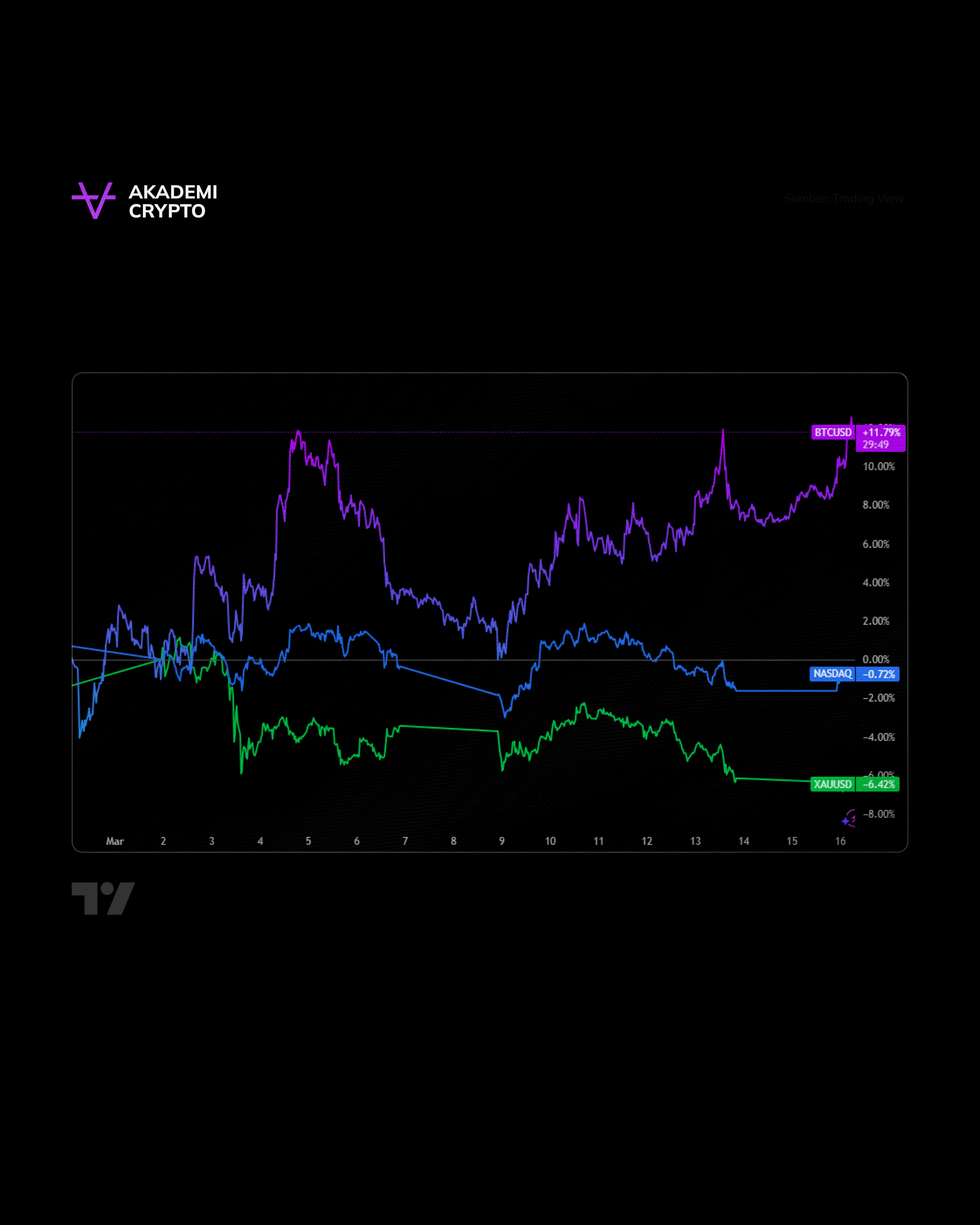 Reports indicate that Bitcoin has even outperformed traditional assets such as the Nasdaq index and gold during certain periods since the escalation of Middle East tensions.