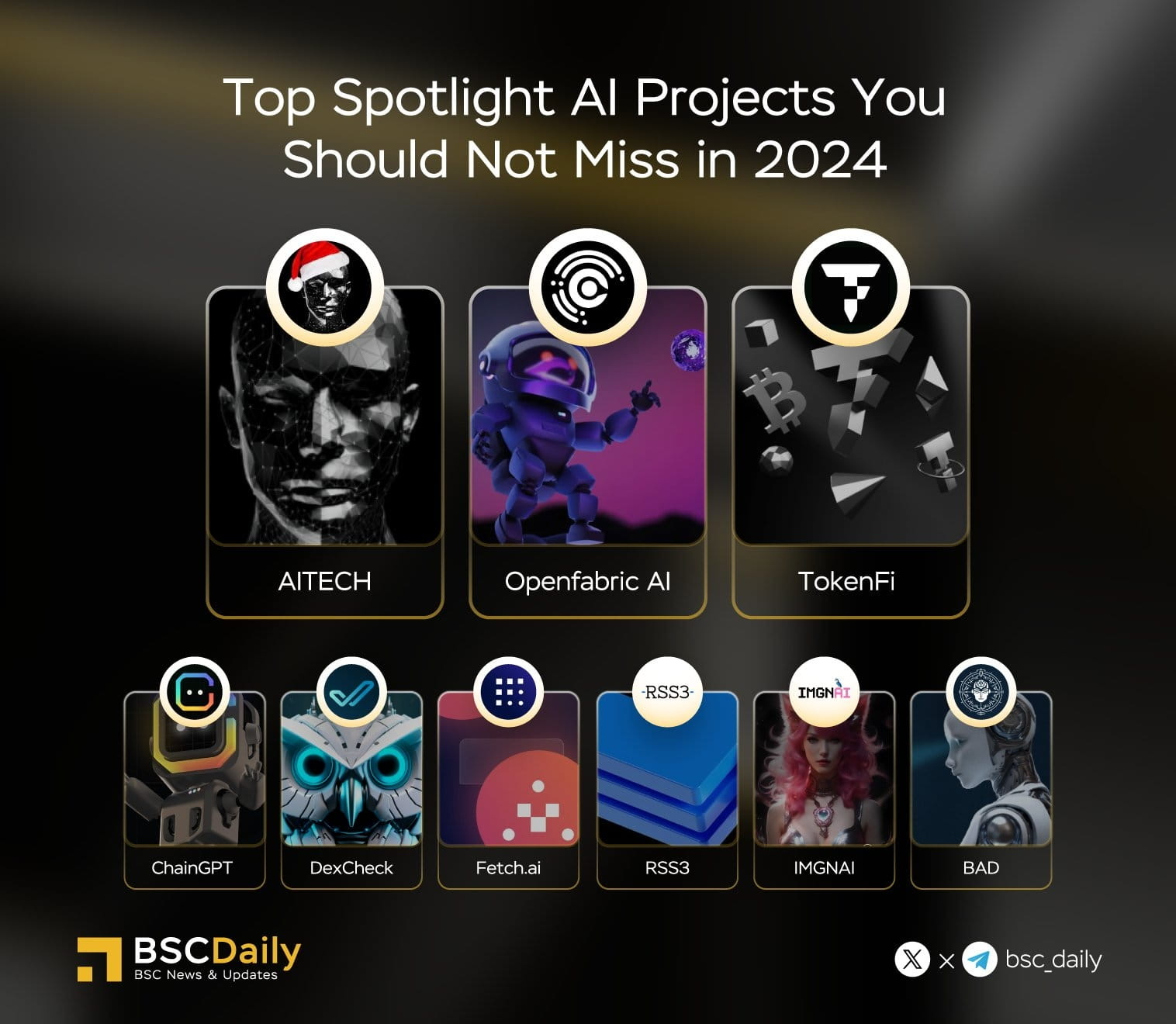 There are many different AI-focused tokens on Binance Smart Chain (BSC). These tokens typically represent projects related to artificial intelligence technology, data analytics, or similar topics. However, specific projects and tokens may constantly change, new projects may emerge and existing ones may be updated. When researching AI-based token projects, it is important to check the project's official website, whitepaper, social media accounts and crypto news sites for up-to-date information. Obtaining up-to-date information about such projects on BSC directly from sources will help you access accurate and reliable information.