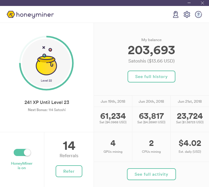 Honeyminer gives anyone easy access to sophisticated mining software. Imagine earning meaningful passive income just by having your co Earnings depend on the power of your graphics card as well as overall market conditions. Newer PCs can make anywhere from $15-$75* per GPU per month.mputer turned on, all while taking part in the blockchain revolution.