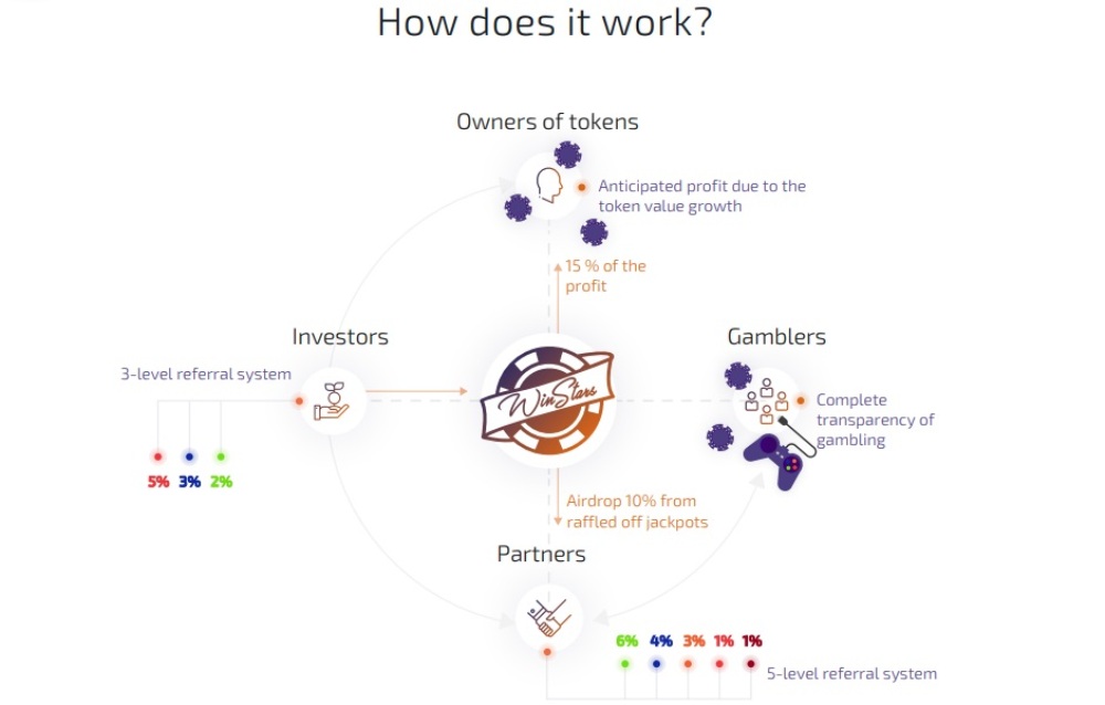 The purpose of Winstars project is to create an international, absolutely transparent online operator built on the basis of Blockchain technology (in particular, Ethereum), with the ability to check the history of each bet, game and the algorithm for determining winnings.