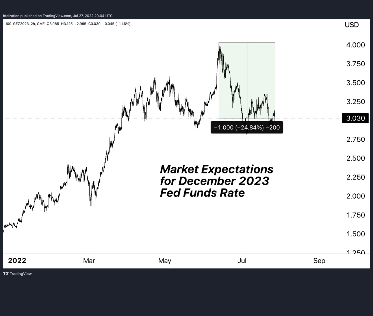 Repricing Happens Fastgeneral007 (38)in #crypto • 4 years ago Market Expectations for Fed Funds in December 2023 have fallen 100 bps from the highs set on June 13th; Dec 2023 rates now forecasted at 3.03%. #sct #sct-kr #investing #news