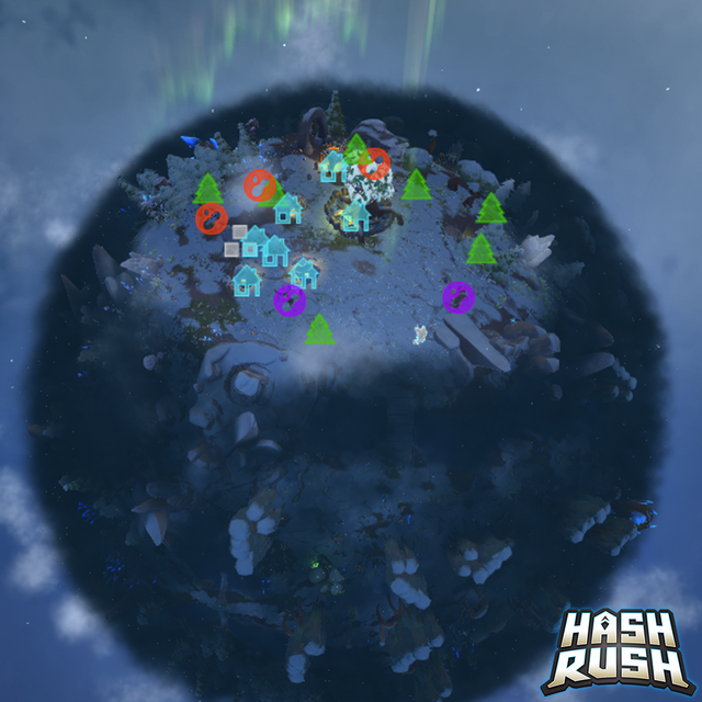Hash Rushの重要なポイントはゲームループです。これはゲームをずっと楽しめる様にするということと、プレーヤーがピンチに直面する様にするために必要な要素です。Hash Rushは一つの惑星が完了すると(クリスタルスクルージを一掃すると)、新しい惑星でスタートします。今の所一つの惑星のバイオームだけですが、砂漠の惑星と氷の惑星を開発を進めています。さらに増やしていく予定です。