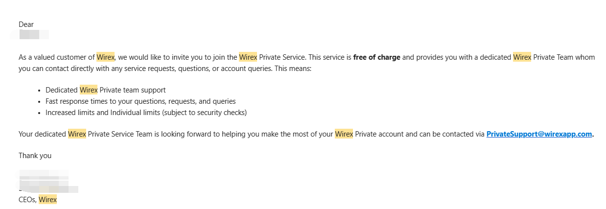 WirexApp has a Wirex Private Service, but it seems it is an invitation-only service. I got the email: