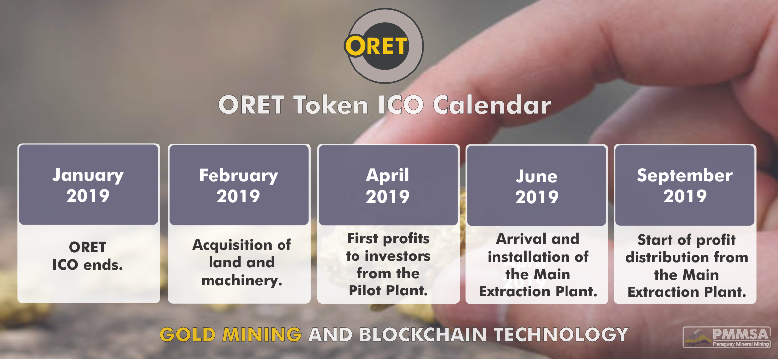 All Depending on the figure of funds raised, ORET TOKEN project has 3 diff strategies to deal with the structure of the metal (gold or other precious metal) mining unit. When the Hard Cover of ORETOKEN project is reached, the revisit on your investment grows extensively!