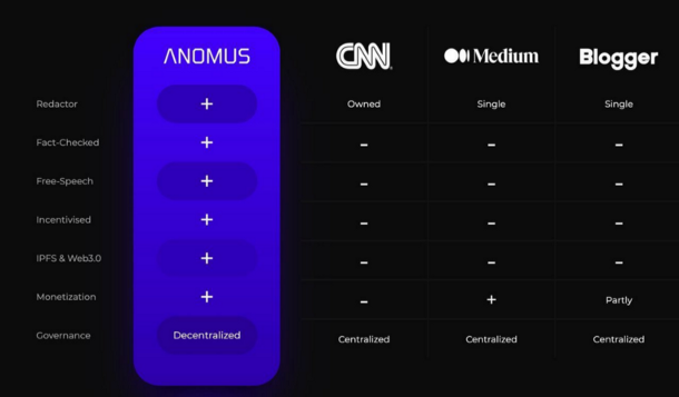 A decentralized news source means that they are able to forego these problems of having to always check every news channel and website for information since Anomus has figured out a way to do just that. Because of their decentralized nature, they do not follow any agenda. Therefore, their fact-checked approved writers allow you to be able to confidently trust that the news is coming from truth and honesty: a notion that cannot be said by mainstream news outlets. What exactly can Anomus offer that the other news sites cannot?