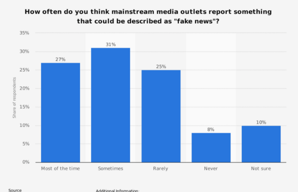 In those corporate or government news stations, there is nothing keeping them from stretching the truth. The Library of Northwestern Arkansas Community College reported that over 50% of the people surveyed believed that mainstream news outlets were reporting fake news either most of the time or sometimes.