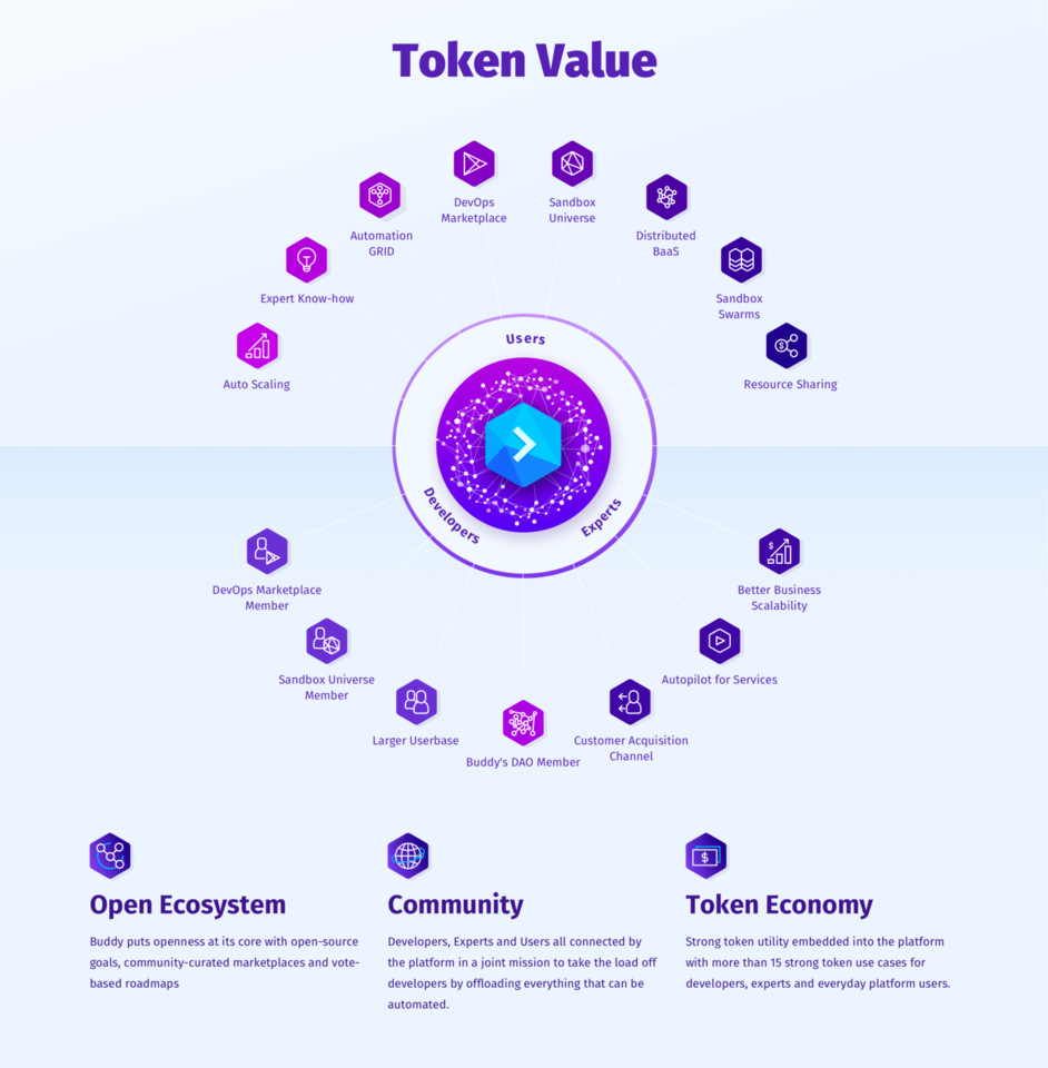 Buddy has introduced their token as Bud Token and we can partner with Buddy as a user, expert or a programmer. The BUD token has 15 use cases on the Buddy platform which are highlighted on the chart below.