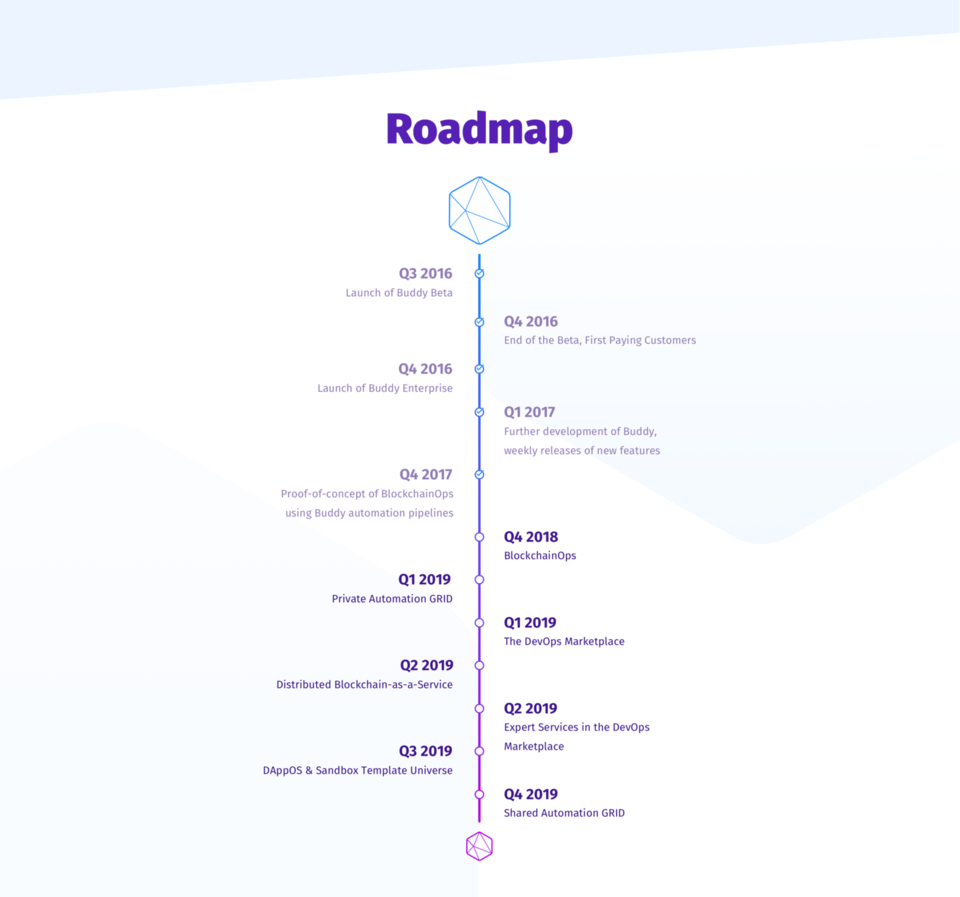 Buddy was created formally in 2015, though the team has started working since 2007. Buddy has already established the partnerships with companies like Google, Docker, Github, Microsoft. The application automation industry has a market share of around $110 billion and predicted to be worth $346 billion by 2022. The updates and improvements on their platform since 2016 is in the following chart with a roadmap until 2019.