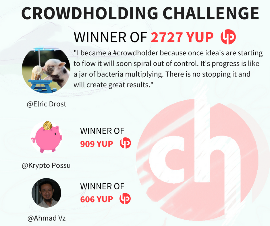 #Crowdholders, the Crowdholding Challenge has ended. Here our top 3 winners! Congratulations to all and especially to our BIG winner who will have the chance to meet our Ethan Clime, Crowdholding's CEO!