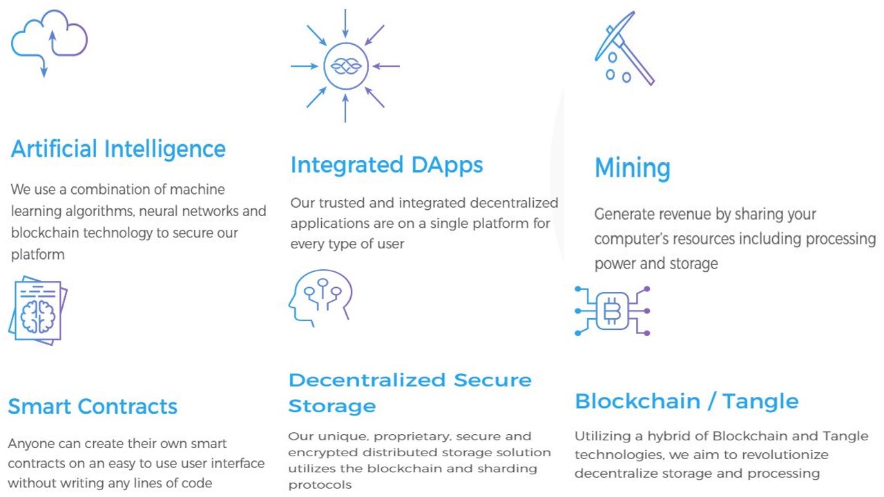 The platform allows their user's generate revenue through sharing of computer resources including processing power and storage on the blockchain.