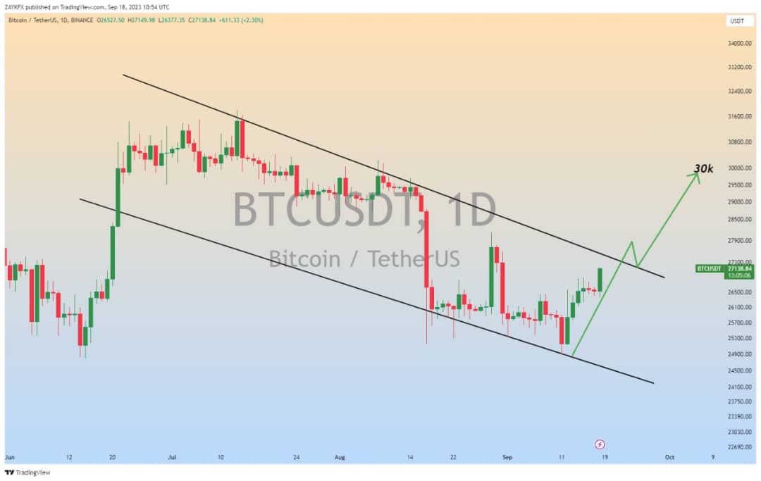 Btc tradesagejoe (20)in #crypto • 3 years ago #BTC (Update) Descending Channel Formation in 1D Timeframe✅ When a breakout happens, Next target is 30k✍️ Posted using SteemPro Mobile