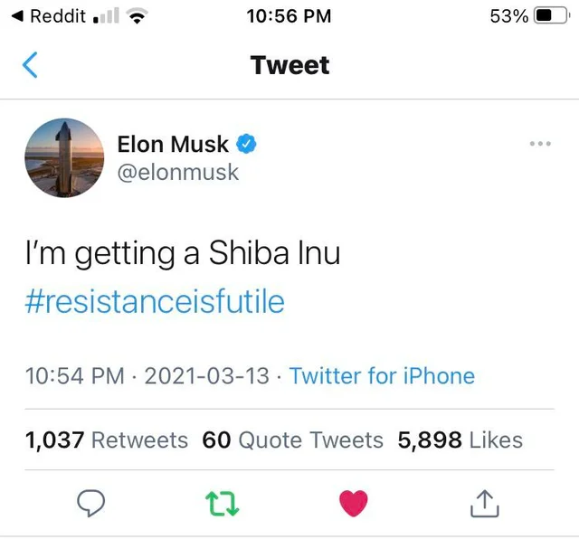 Update: Elon Musk recently tweeted "i'm getting a Shiba Inu" which has caused a bit of a frenzy-