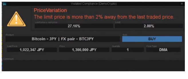PRE trade which includes simple limit with complex portfolio and post tradecompliance which includes ; alerts , monitoring and reporting.