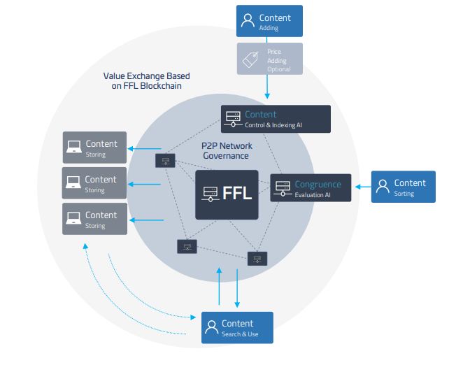 FFL will combine the existing digital library creation principles with new hybrid semi-decentralized technology, using P2P fog network of web browsers in order to reduce the costs and limitations of centralized digital libraries. FFL will focus heavily on creating and maintaining a community of volunteers, who would upload, tag and oversee useful files and who in return would be rewarded with FFM tokens. Another factor for choosing P2P networks was due to the already large amount of people that are using them – it has been estimated that in 2017 almost 1% of worldwide Internet users engaged in P2P file sharing per day.