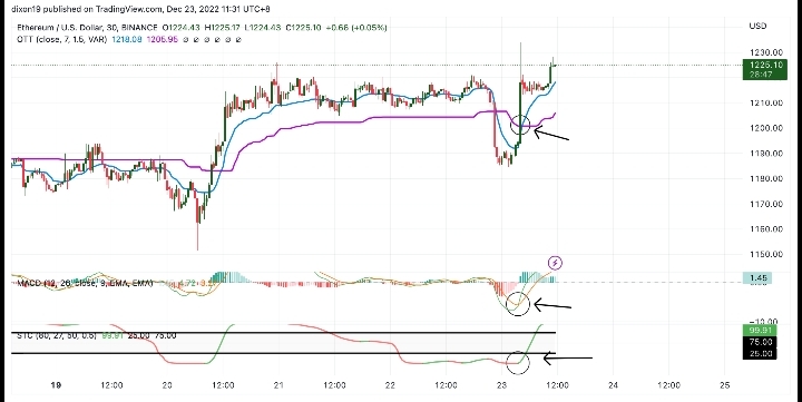 The STC indicator also turned from red to green and it is below the level of 25 which also indicates buy signals.