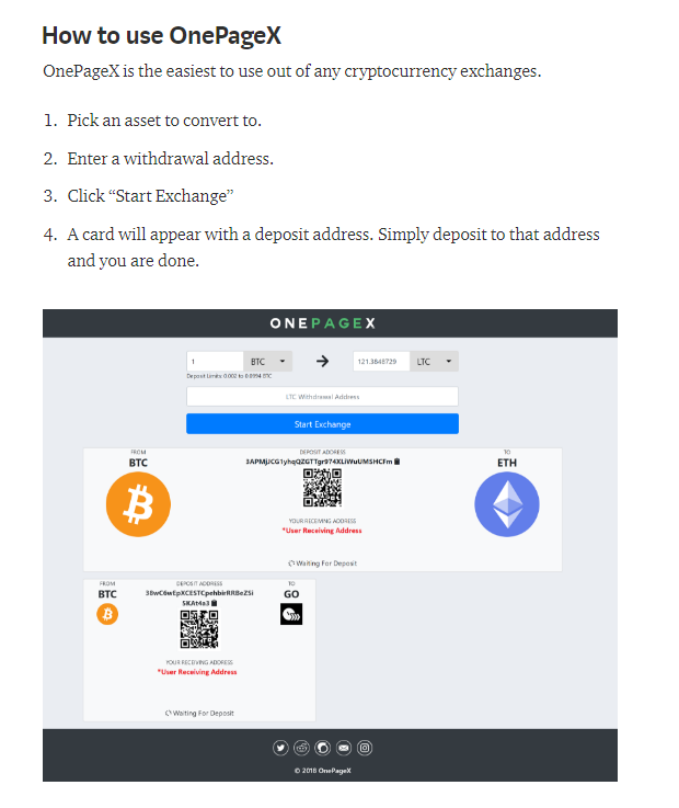 When you change your bitcoin you decide to use OnePageX, it's easy and simple as well as having a wide selection of cryptocurrencies on your list.