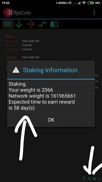 Usually we are using computer or raspberry pi to stake. But with RPICoin its very easy to start staking, only using your mobile phone. Stake reward is 300 RPI/stake. The different is how long you can get a stake reward. Its depend on your coin balance. If you have more coin, you can get reward in minutes or if you have less coin maybe in few days.