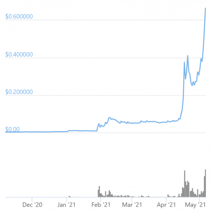 尽管遭到批评和批评,狗狗币仍在继续飞速发展,目前在市值上排名第四。 当前价值约0.650美元。 它的最近历史高点是今天早些时候的0.686美元(Coingecko数据)。