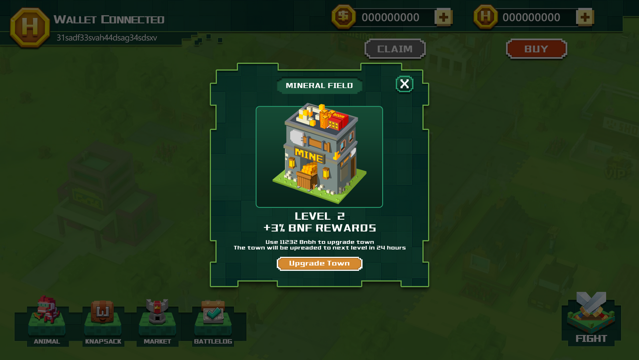 Level 2 (AMT entspricht 0,05 BNB/24 Stunden) Kampf: +30XP