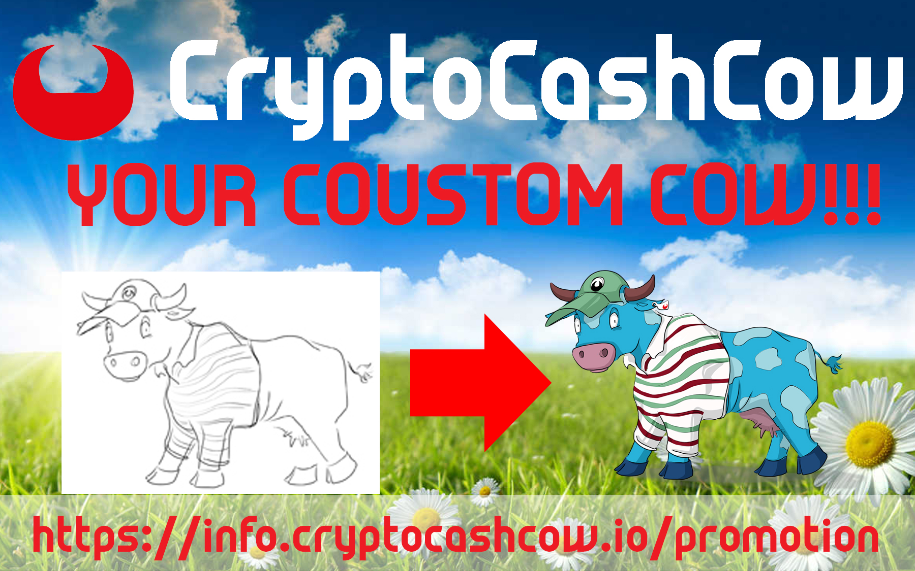 🚀🚀🚀Looking for a way to promote your brand? We design your custom cow for CryptoCashCow!!! Checkout our plans for custom cow promotion -> https://info.cryptocashcow.io/promotion . We offer plans for everyone!!! From SMALL (5ETH) to ROCKET (25ETH) #CryptoCashCow #ToTheMoon 🚀🚀🚀